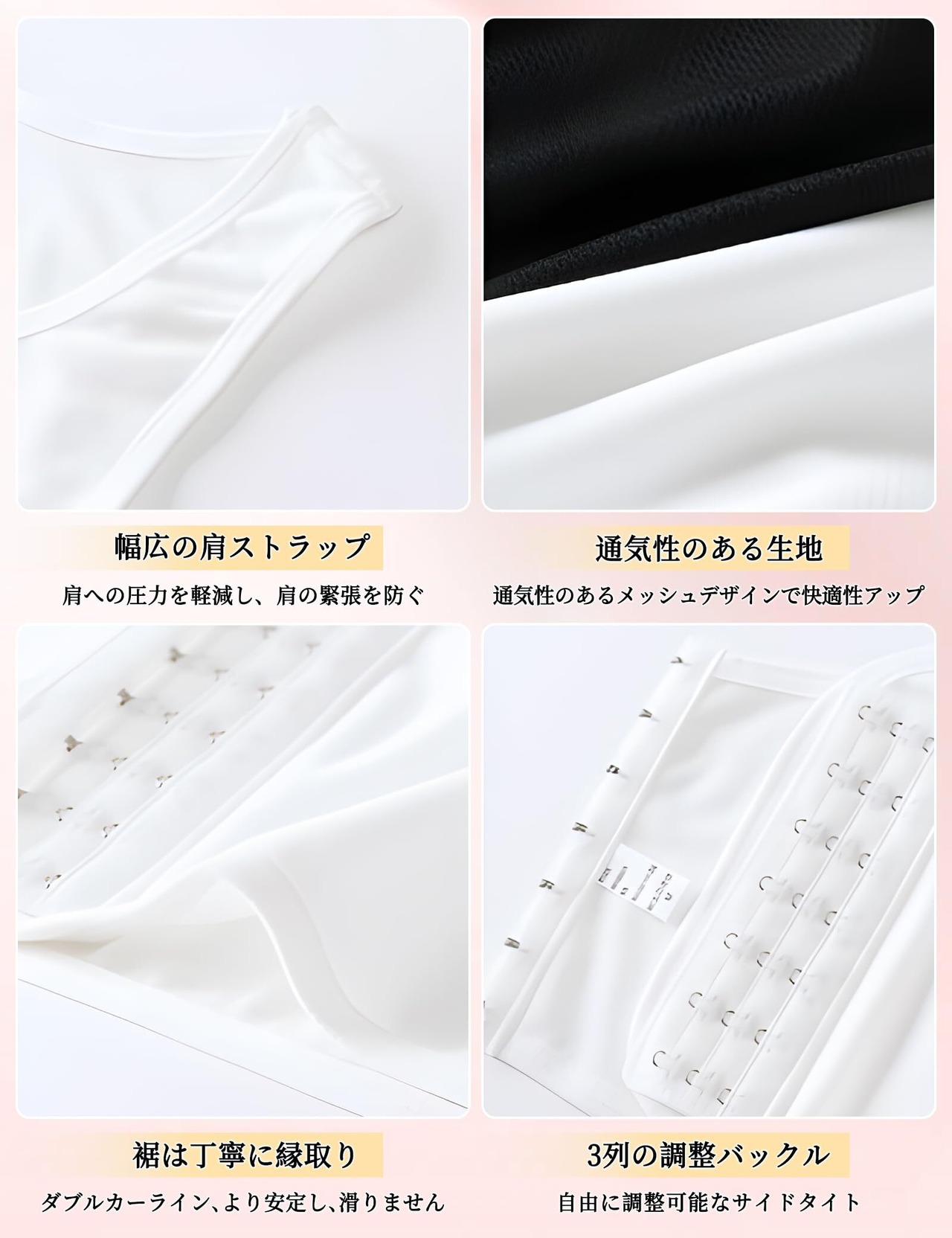 【3段階フックでサイズ調整可能】右側は調整可能な3段階フックを採用し、胸の締め付け具合を調整し、理想的なサイズに胸を締め付けます。着用感に合わせて適切な締め付け感をお選びください。タイトなデザインは、胸を引き締める効果を維持するだけでなく、運動中の胸の揺れによる痛みを効果的に軽減します。