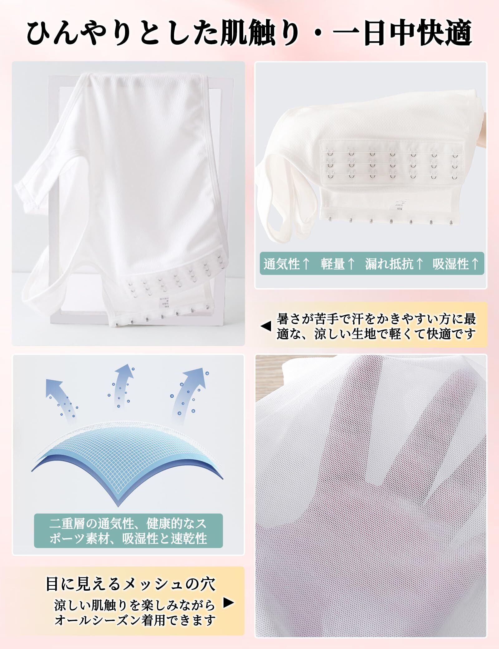 【通気性に優れたメッシュ生地】背面は軽いメッシュ生地を採用し、夏でも蒸れにくく、長時間の着用でも快適です。肩幅を広めにとっているため、締め付けやずれの心配がありません。高伸縮性の生地は洗濯しても変形、縮み、シワになりにくく、耐久性に優れています。