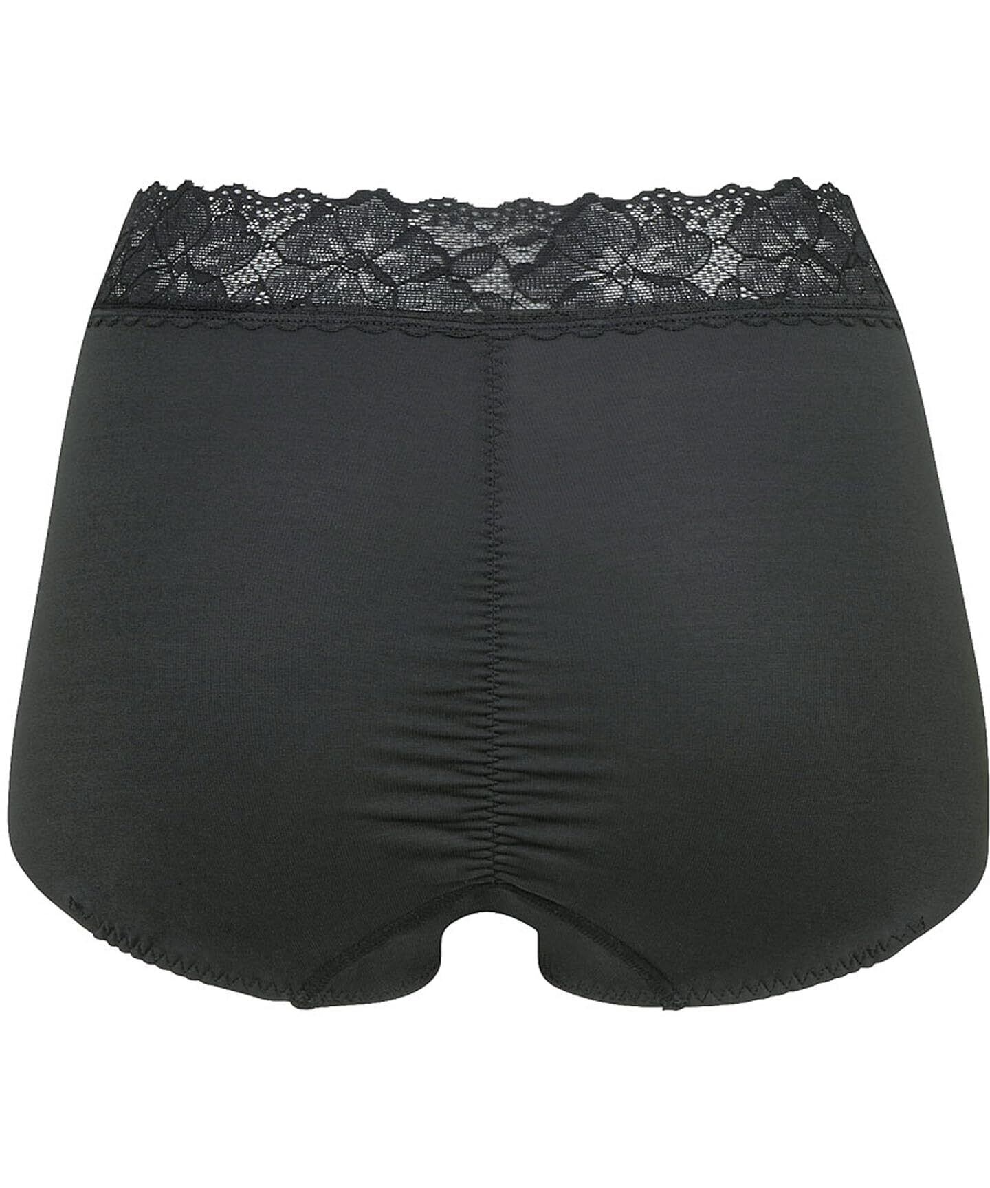ガードル気分じゃないけれど、適度におなかとヒップをととのえたいときにちょうどいい、ほどよいサポート力の補整ショーツ。身生地部はタテ・ヨコによく伸びる綿混素材で、ヒップもおなかもすっぽり包みこむ快適なはきごこち。おなか部分はレースで押さえてすっきり。後ろ中心ゴムがヒップを引き上げ、ギャザーを加えて、きれいなまるみをキープします。