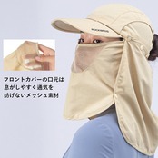 【紫外線対策】キャップ・フェイスカバー・ネックカバーが一体化した超紫外線対策日除け帽子!首の後ろから肩もしっかり覆われて、日焼け・熱中症対策、ガーデニングなどの作業にピッタリ!