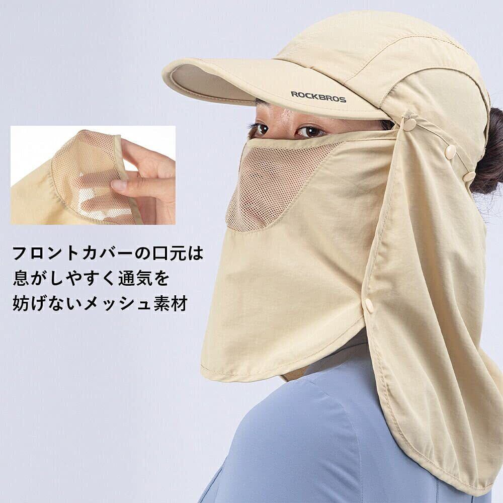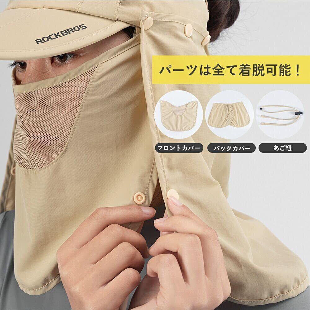 [ROCKBROS] ロックブロス 日よけ帽子 キャップ フェースカバー 帽子 フィッシング・農作業・キャンプ・アウトドア 紫外線対策 UVカット 4WAY 撥水 メッシュ素材 通気性 折りたたみ あご紐付き 男女兼用 コンパクト メンズ レディース