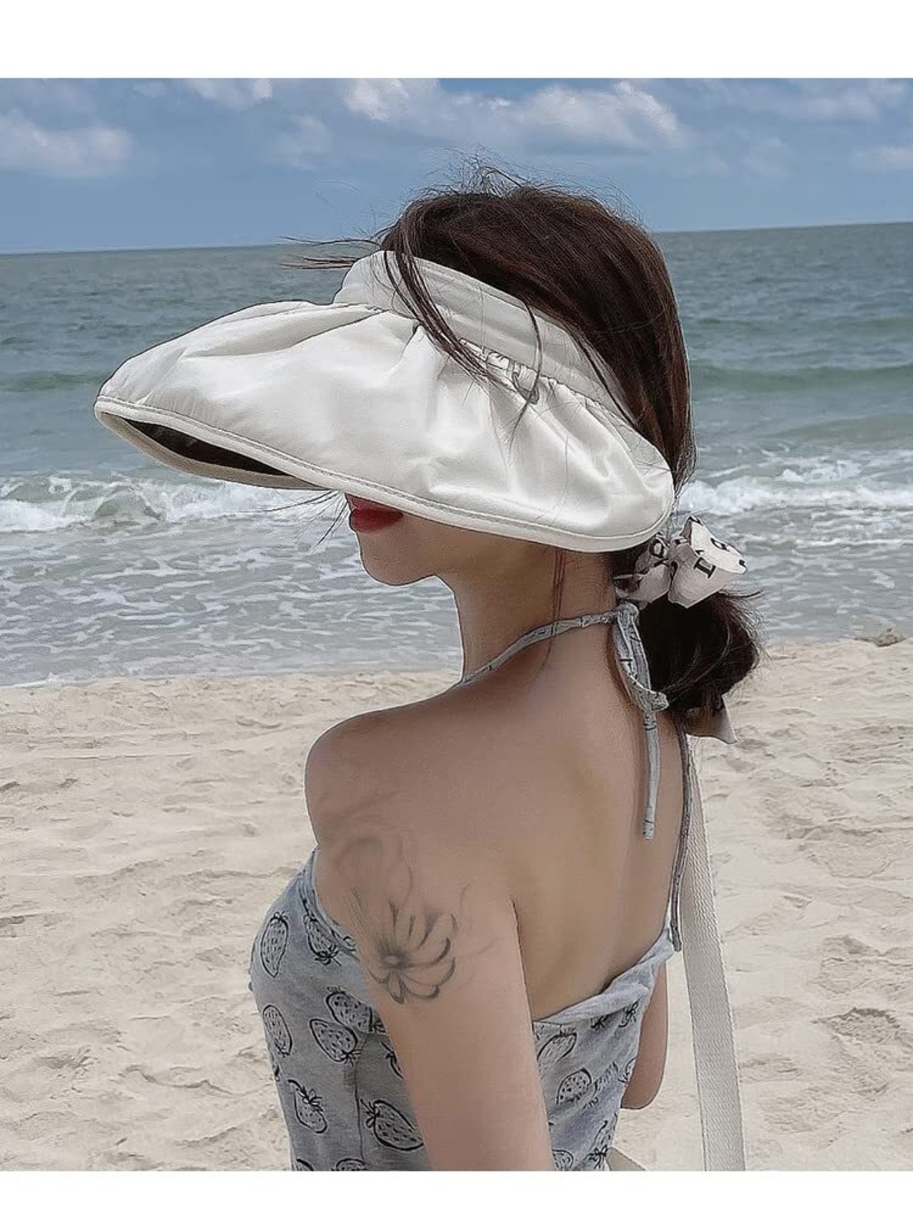 [LeafIn] UVカット サンバイザー 帽子 ハット レディース 小顔効果 日よけ帽子 紫外線対策 2way 日焼け防止 熱中症予防 折りたたみ つば広 軽量 おしゃれ 可愛い 旅行 日よけ 日射し 夏 1601