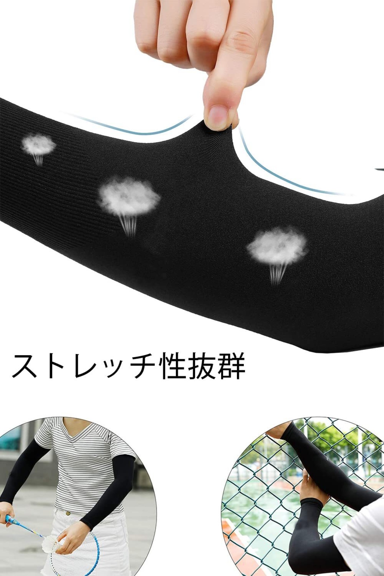 【吸汗速乾】本社のアームカバーは着用しても涼しい特性を活かし、 ズレを感じない、水や汗で濡れると気化熱の作用により冷却効果もあります。
