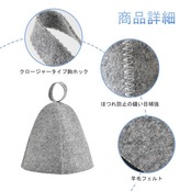 【ウールフエルトを使う理由】ウールは、肌に優しく吸湿性に優れている事が特徴で、抗菌・消臭効果があり、色褪せ・色落ちしにくく、シワにもなりにくいため型崩れしにくい事など、ウールはサウナハットに適した特性を持つ素材です。