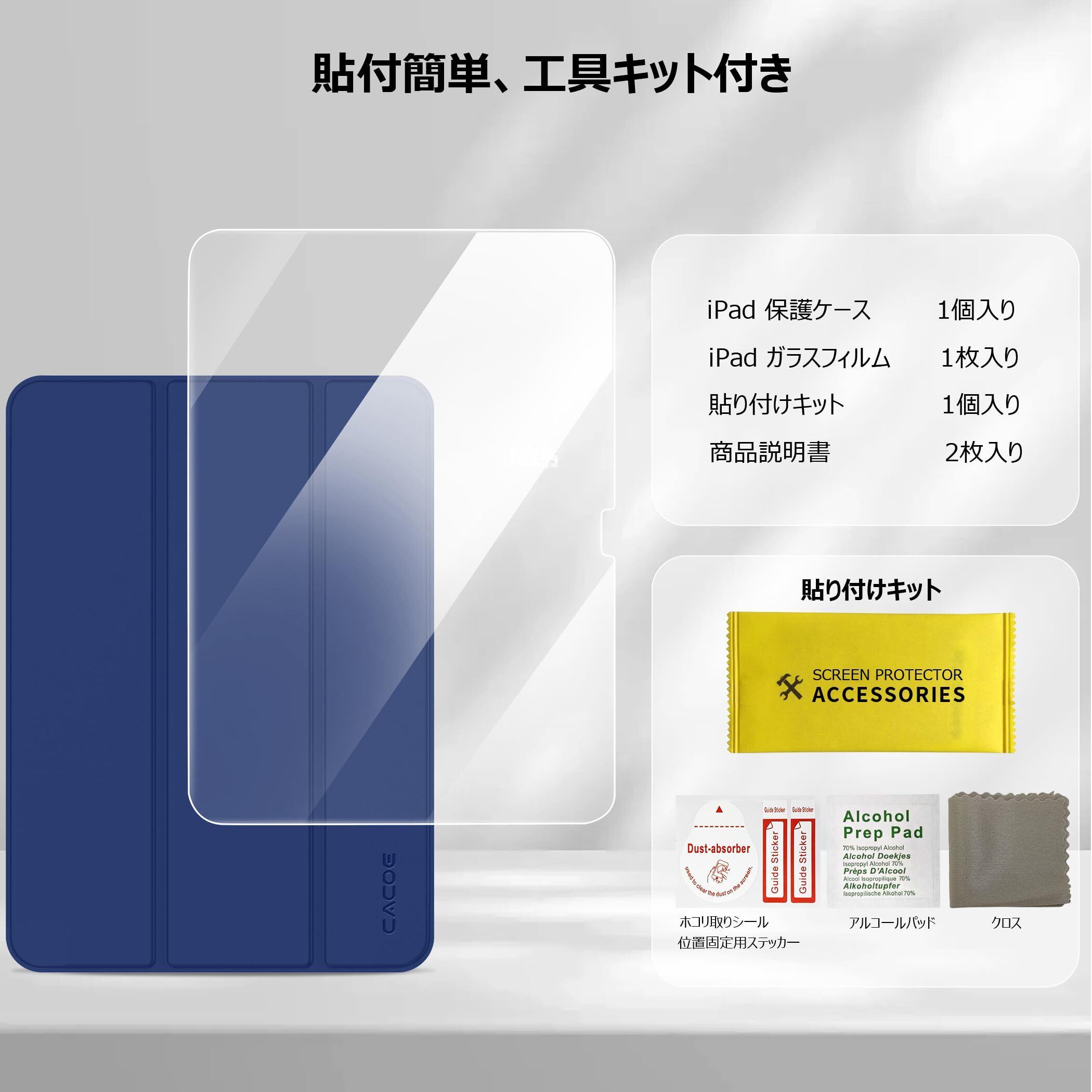 [iPad 11世代 10世代 ケース ガラスフィルム セット]CACOE ipad a16 11インチ 2025/10.9インチ 2022 アイパッド用 ハードケース オートスリープ 三つ折り Apple Pencil対応 あいばっど カバー ネイビー