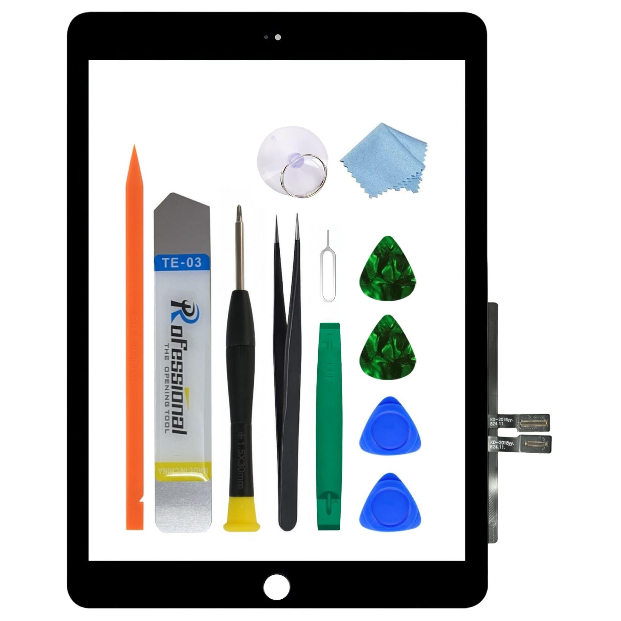 ブラック タッチパネル交換用 9.7インチ 2018 iPad 第6世代(A1893 A1954)ガラスタッチデジタイザー交換修理用、取り付け済み接着剤、ツール修理キット [ホームボタンなし]
