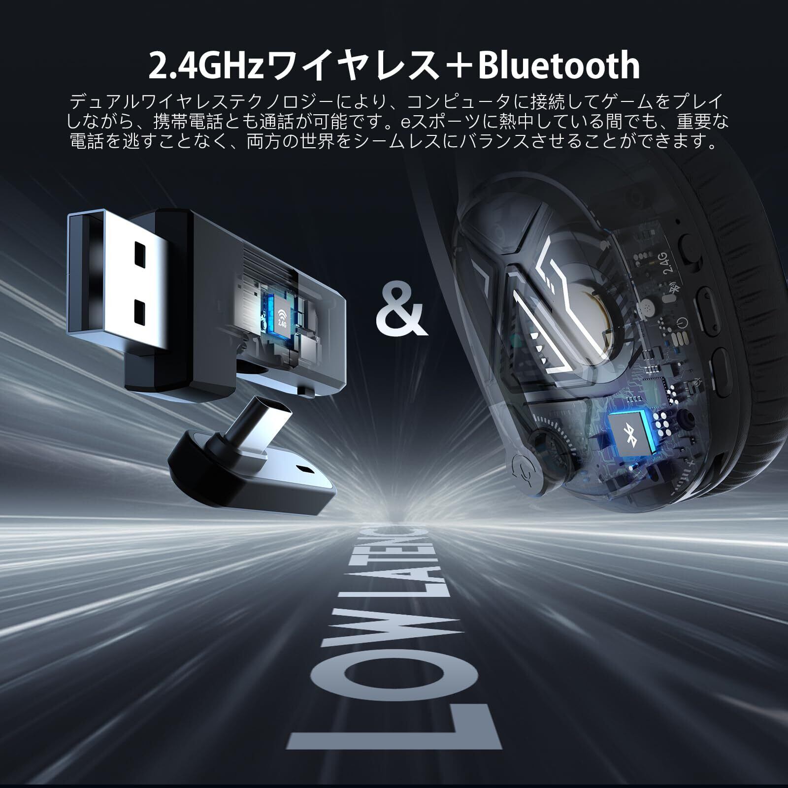 EKSA ヘッドセット ゲーミング「2.4G USB/Bluetooth/TypeC/3.5mm有線/無線」 ゲームヘッドホン マイク付き 7.1ch 立体音響 235g 軽量 低遅延 ワイヤレス ゲームヘッドフォン ゲーム向き 50mmドライバー ENC マイク レザー 3モード接続 防汗 PC / PS4 / PS5 / Xbox/Switch対応 E5BT「黒·ブラック」