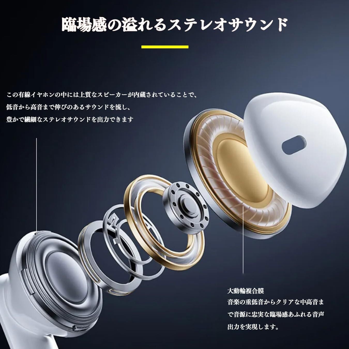 【没入感ある高音質】Type C 有線 イヤホンはアップグレードチップを搭載し、最新改良の高品質スピーカーが搭載されており、複合鼓膜ダイナミックドライバーを備えており、イヤホンは内蔵の前後の振動膜アップグレードし、そのため、デジタル入力信号やハイレゾ音源に対応しており、高い解像度で音源を鮮明に再生することができます。HiFi高音質に対応し、音質劣化・遅延などを効果良く軽減し、純音信号がそのまま高速に伝送し、音質が非常に高精度でロスレスであるため、高音から重低音まで歪みのなく迫力な音質を伝達します。