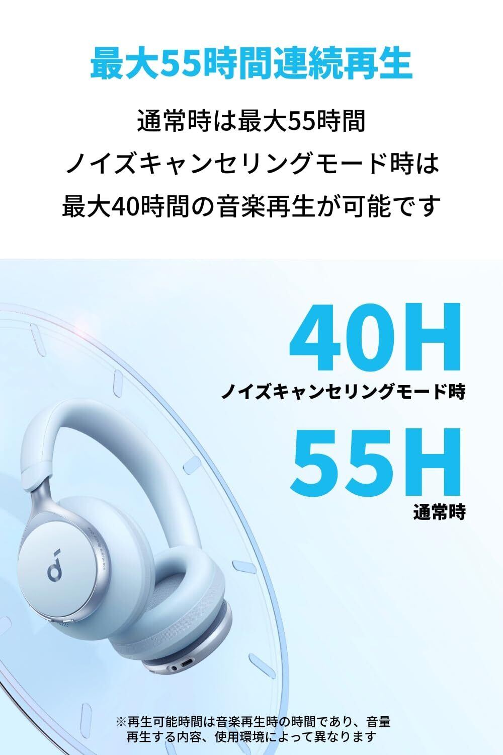 Anker Soundcore Space One (Bluetooth 5.3 ワイヤレス ヘッドホン)【ウルトラノイズキャンセリング2.0 / 最大55時間音楽再生 / LDAC/ハイレゾ対応 (ワイヤレス/有線) / マルチポイント対応/外音取り込み/マイク内蔵】 ブルー