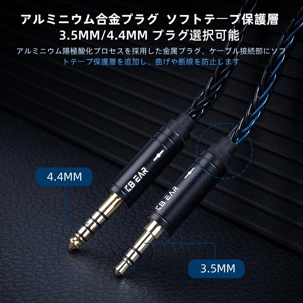 【アルミニウム合金プラグ&ソフトテープ保護層】KBEAR ST12アップグレードケーブルはアルミニウム陽極酸化プロセスを採用した金属プラグ、ケーブル接続部にソフトテープ保護層を追加し、曲げや断線を防止します。市場の主流ブランドのマザーとピンに対応する豊富なオプションを提供し、適切な極性と安定した信頼性を提供します。