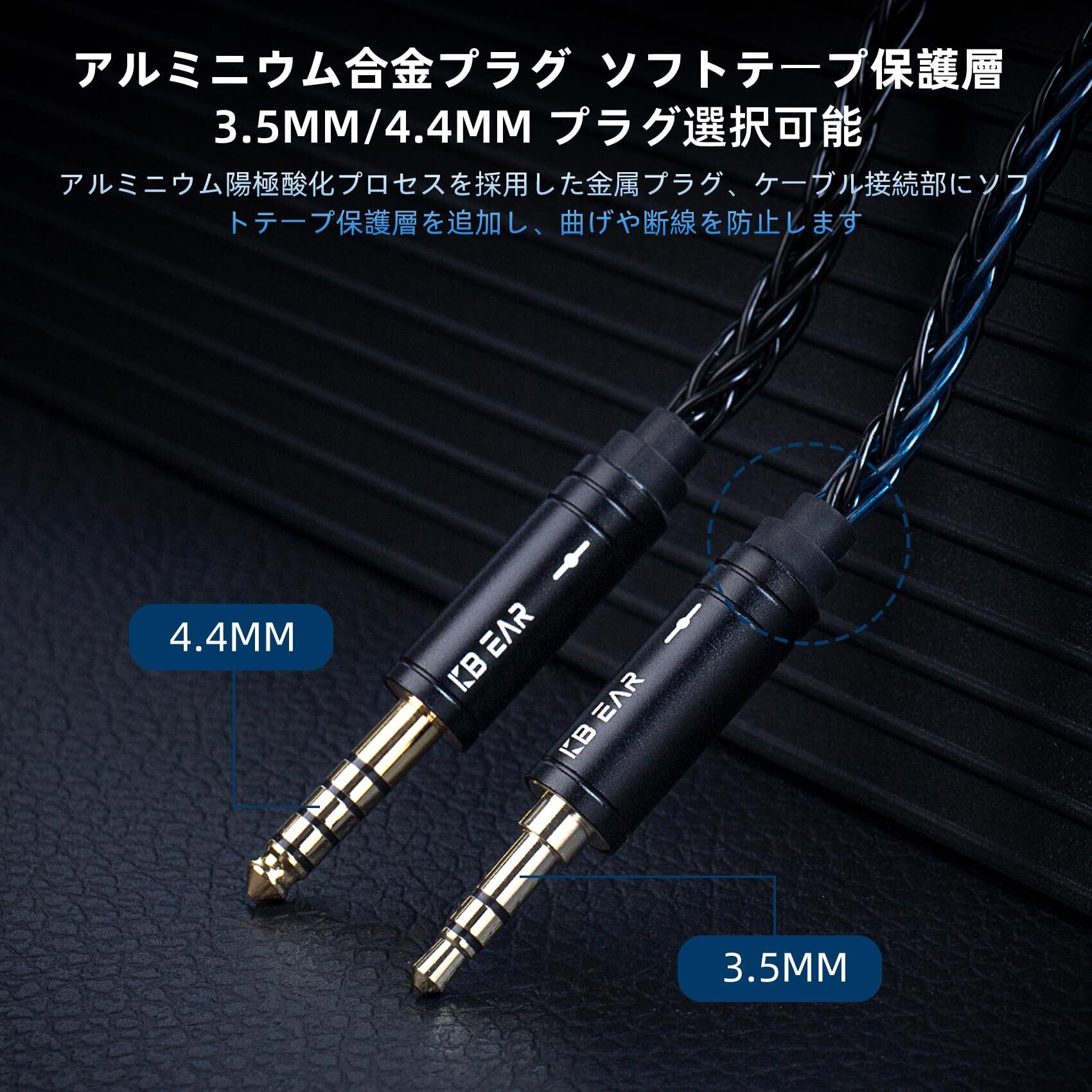 【人気商品】【KBEAR ST12】Yinyoo 2PIN 4.4mmリケーブル 8本14芯銀メッキ Litz 22 AWG標準で生産 4.4mmイヤホンアップグレードケーブル イヤフォン交換ケーブル KZ KBEAR イヤホン適用 ZSTX/castor/ZSN Pro/ZSN PROX/ZS10 PRO/storm/TK01 イヤホン用(黒青・2PIN4.4mmプラグ) | SmartLiving+