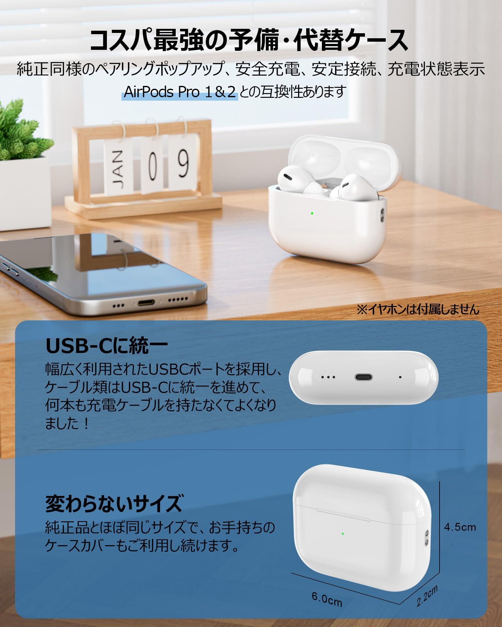 【対応機種】Pods Pro 第1世代&第2世代(純正品且つ元々のセット)との交換性あるUSB-C充電ケースです。元の充電ケースが破損したり、紛失したり場合や持ち歩くケーブルの本数を減らしたい場合、この代替品を選択しましょう。※ご注意:①充電ケースのみ、イヤフォンは含めません。②純正の充電ケースではありません。予めご了承ください。