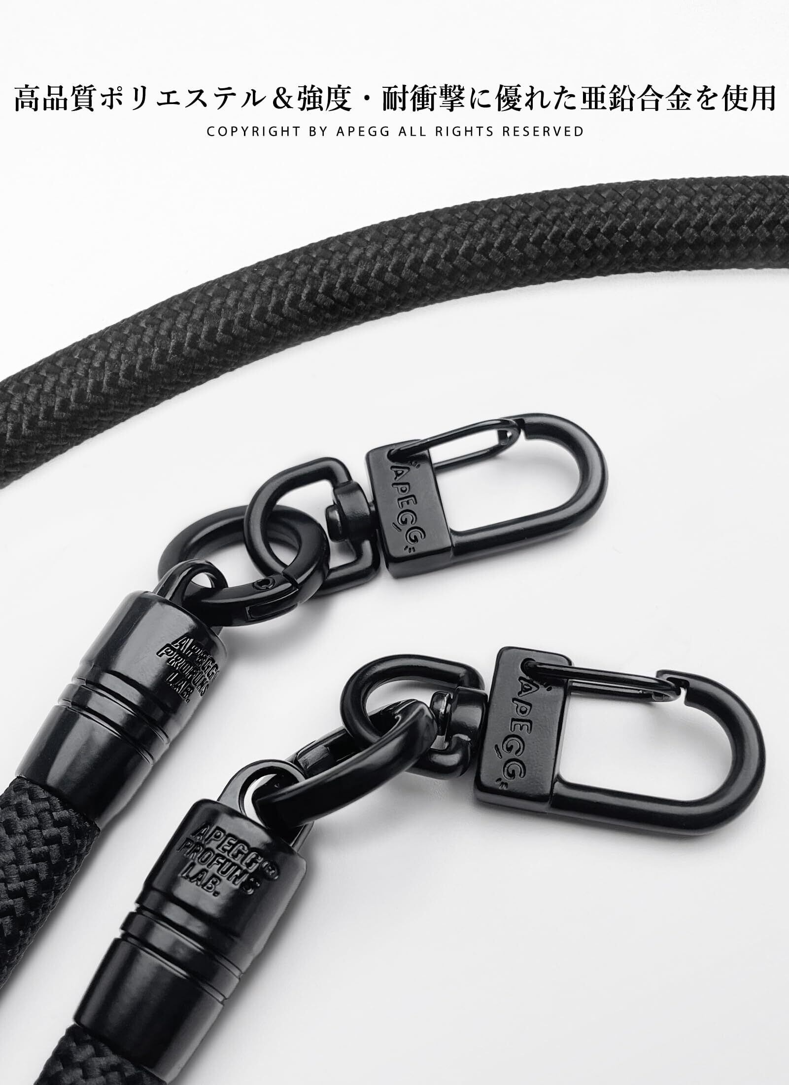 [APEGG] 携帯ストラップ スマホショルダーストラップ 首掛け・肩掛けストラップ 長さ120cm 太さ10mm 頑丈な金属パーツ 落下防止 ストラップホルダー2枚付き 全機種対応 Black