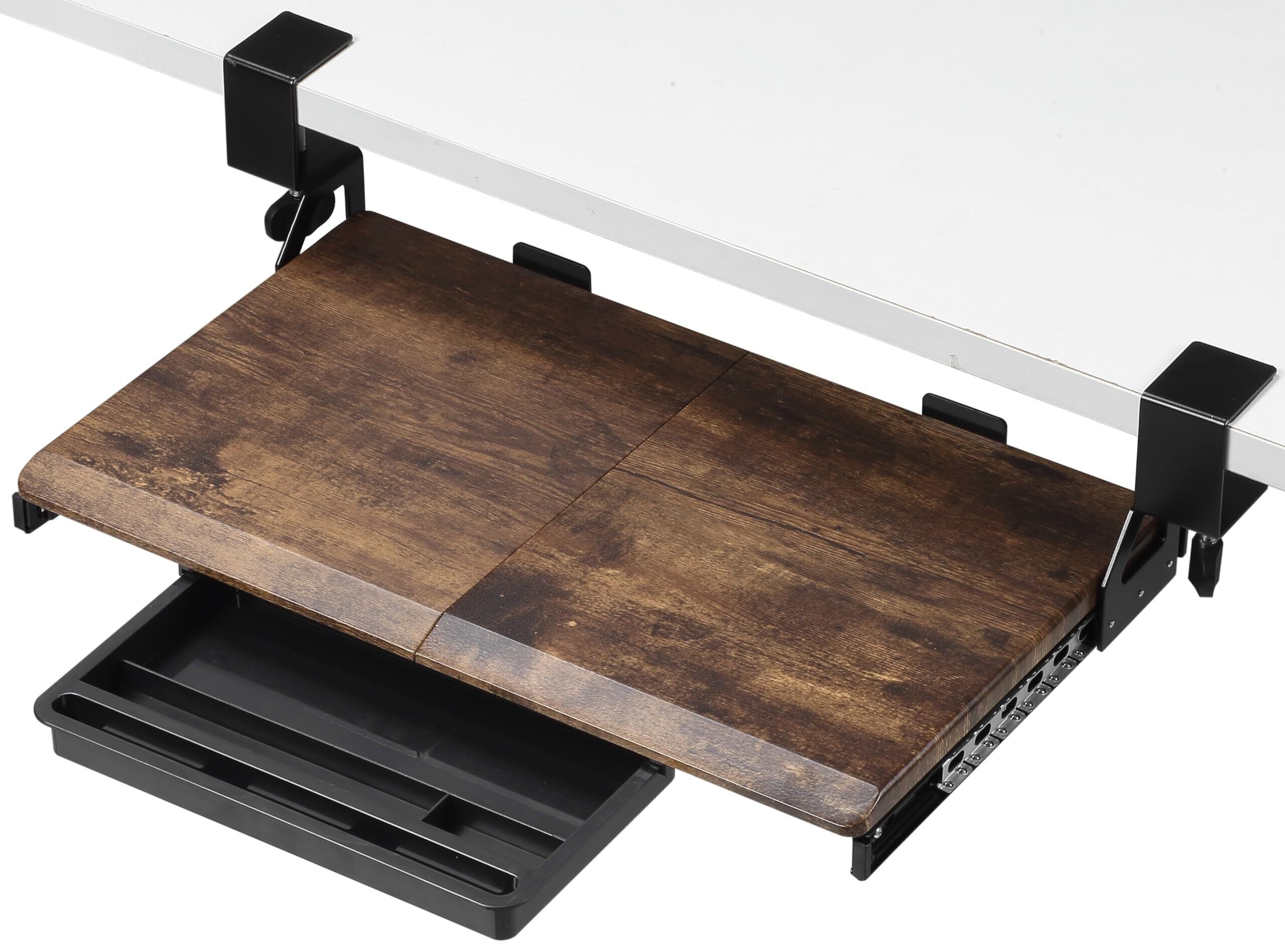 【在庫処分】ETHU キーボードトレイ 後付けキーボードスライダー クランク式 天板2枚接ぎ 幅500*奥300mm スライドスムーズに 人間工学 姿勢改善 マウス収納 引き出し付き 木目調 | SmartLiving+