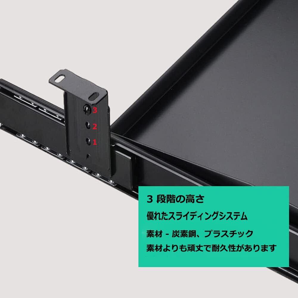 金属製 大型キーボードトレイ,スムーズに引き出せ、ピッタリと収まる:金属レールを採用しており滑りがよく、ズムーズに引き出せ、ぴったり収まります