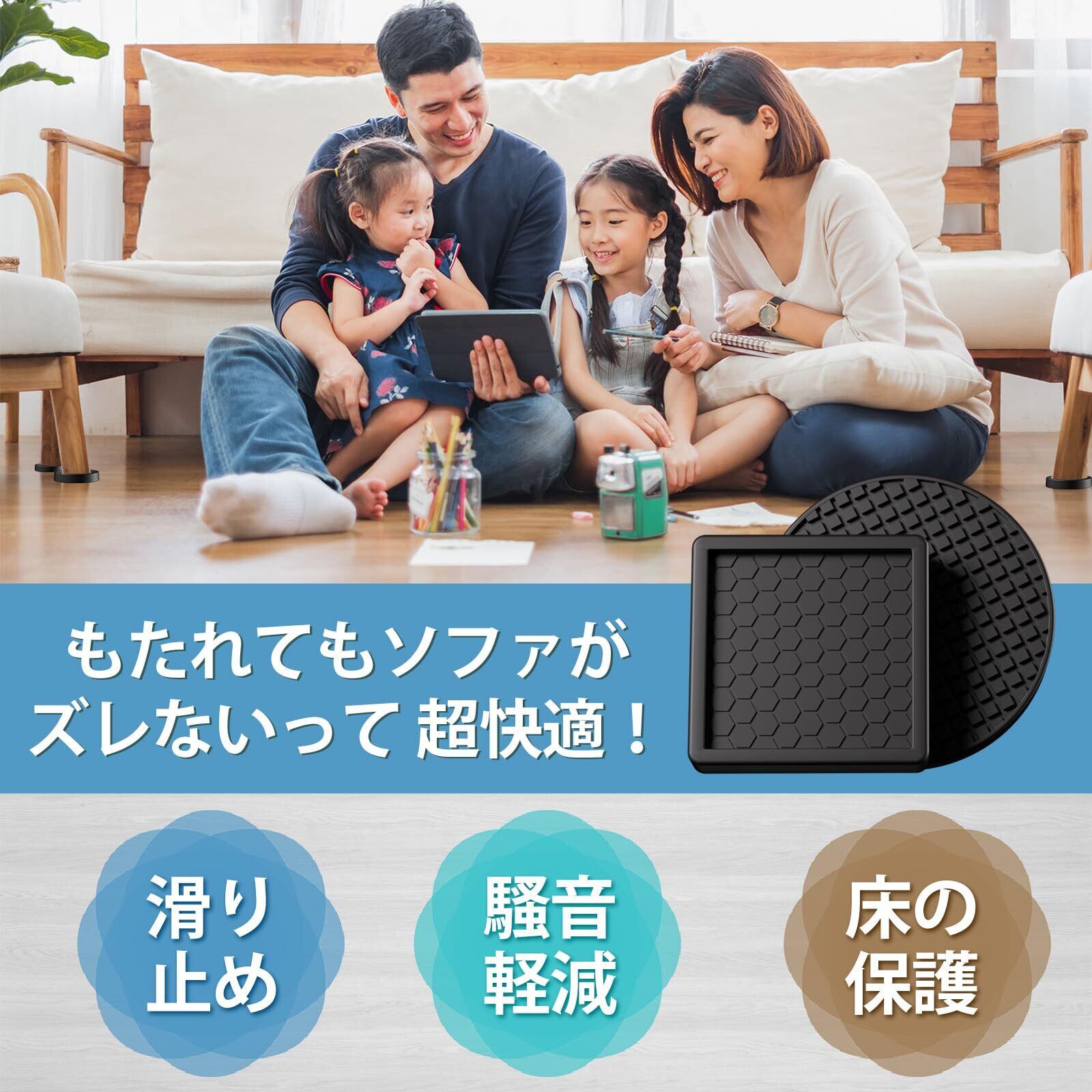 【特別設計で強力な滑り止め】 ソファー滑り止めシートは、ソファー用に特別に設計されています。丸いデザインで、ソファーやベッドの脚にぴったりフィットし、安定した固定を提供します。床にスリップしないように保護し、騒音を効果的に軽減します。さらに、木製床面の傷つきを防ぎ、家の静かな環境を維持します。