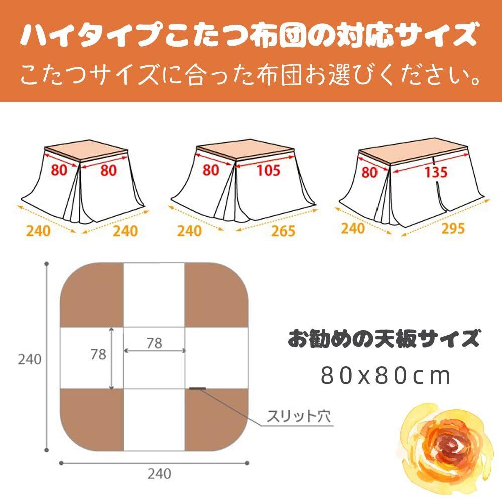 JEMAジェマ ハイタイプ テーブル 省スペース こたつ布団 こたつ掛け布団 掛け布団単品 吸湿発熱 ふわふわ感触フランネル生地 約240x240cm ベージュ 正方形 洗える