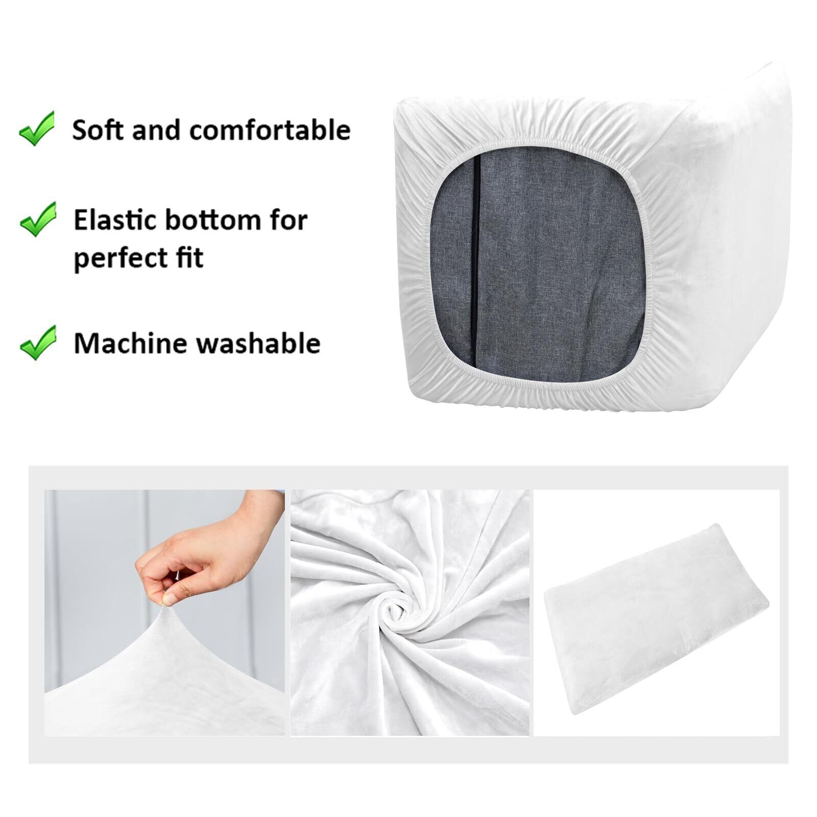 ストレッチ座椅子カバー, ベルベット生地, 伸縮素材, 洗濯可能, 肘掛なし, シンプル無地, ダイニングチェア用 (ホワイト)