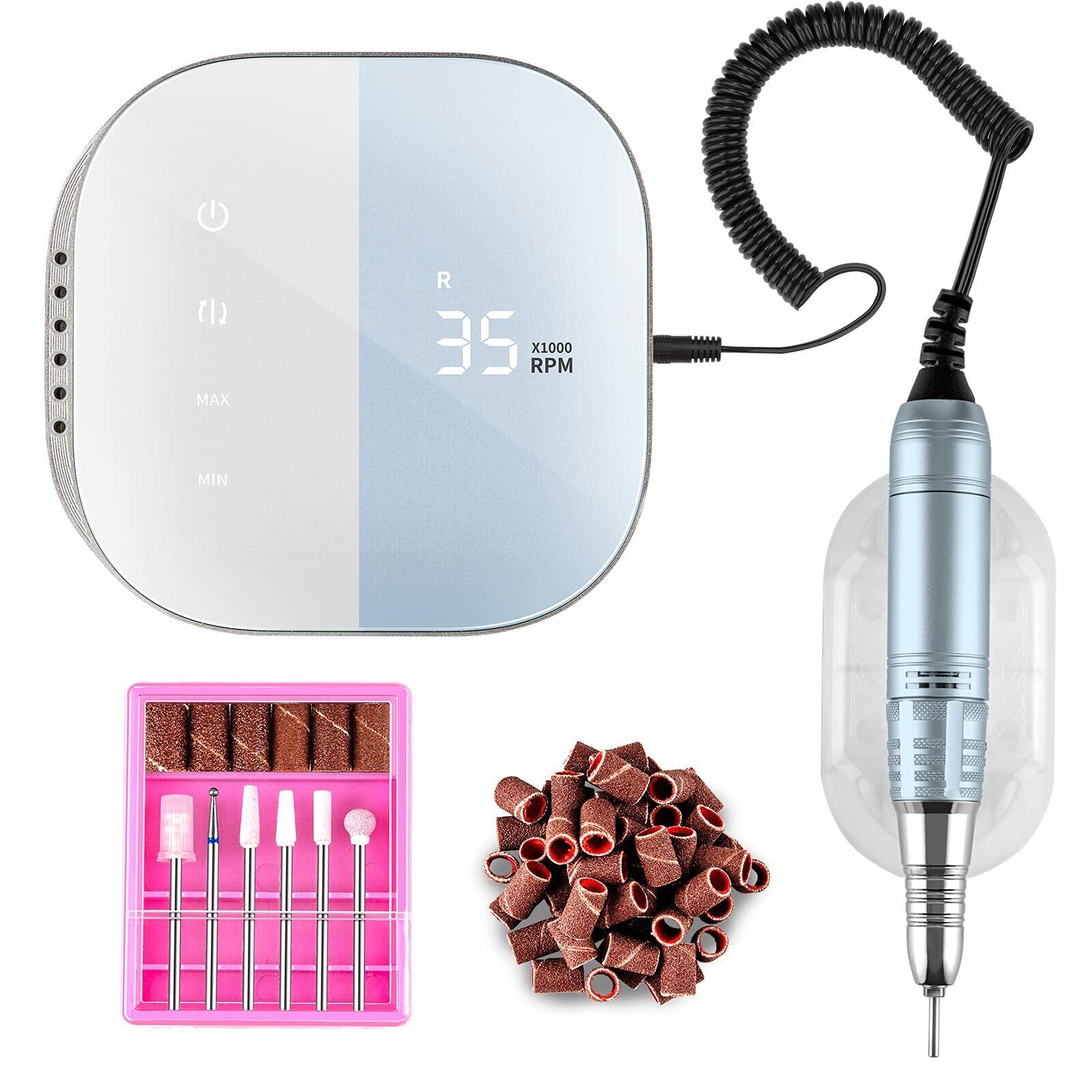 Madenia ネイルマシン ネイルマシーン ネイルマシーン 電動ネイルマシン 電動ネイルマシン プロ 電動ネイルケア タッチパネル搭載 液晶画面 35000RPM高速回転 スピード調節可能 多種ビット付 サンディングバンド 低振動 低騒音 高散熱 初心者 家庭 サロン プロに適用 パールブルー