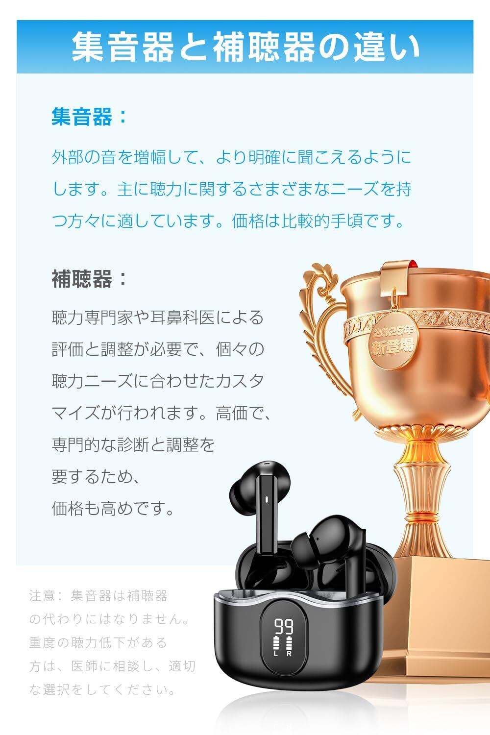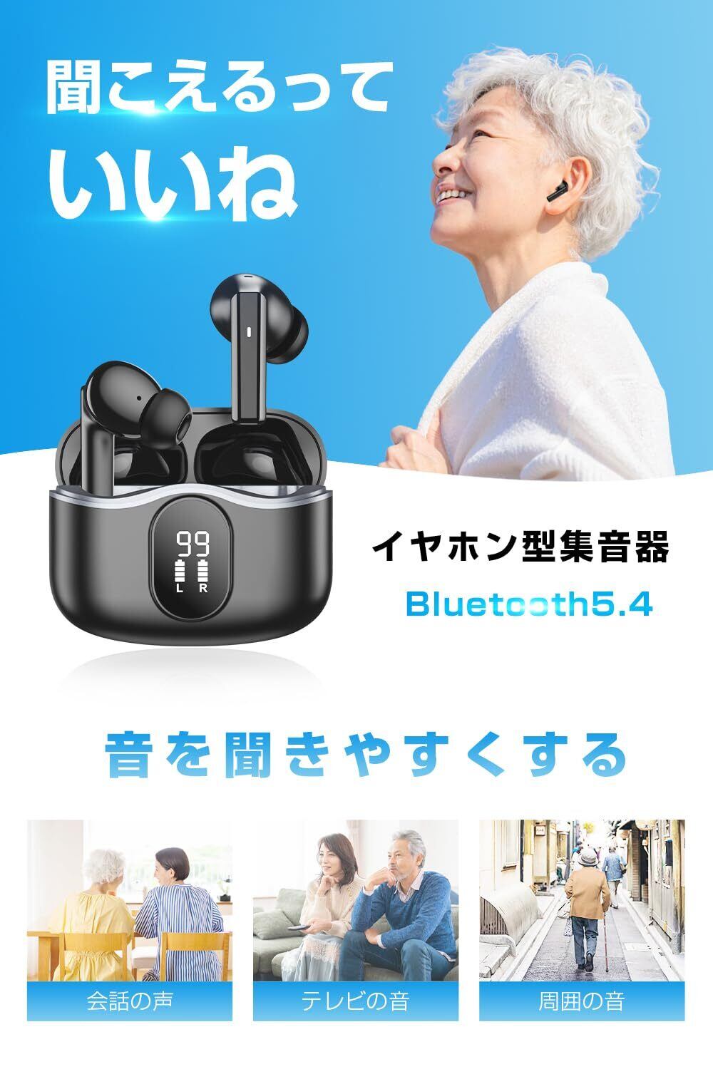 【特価セール】【2025新登場 1台2役】 集音器 高齢者 イヤホン型 しゅうおんき Bluetooth5.4 両耳/片耳対応 Type-C充電式 カナル型 ANC+ENC ノイズキャンセリング 5段階音量調節 小型 軽量 簡単操作 音量調節 遅延ゼロ 自動ペアリング LEDディスプレイ表示 Bluetooth搭載電話/テレビ/音楽対応 敬老の日 母の日 父の日 プレゼント (ブラック) | SmartLiving+