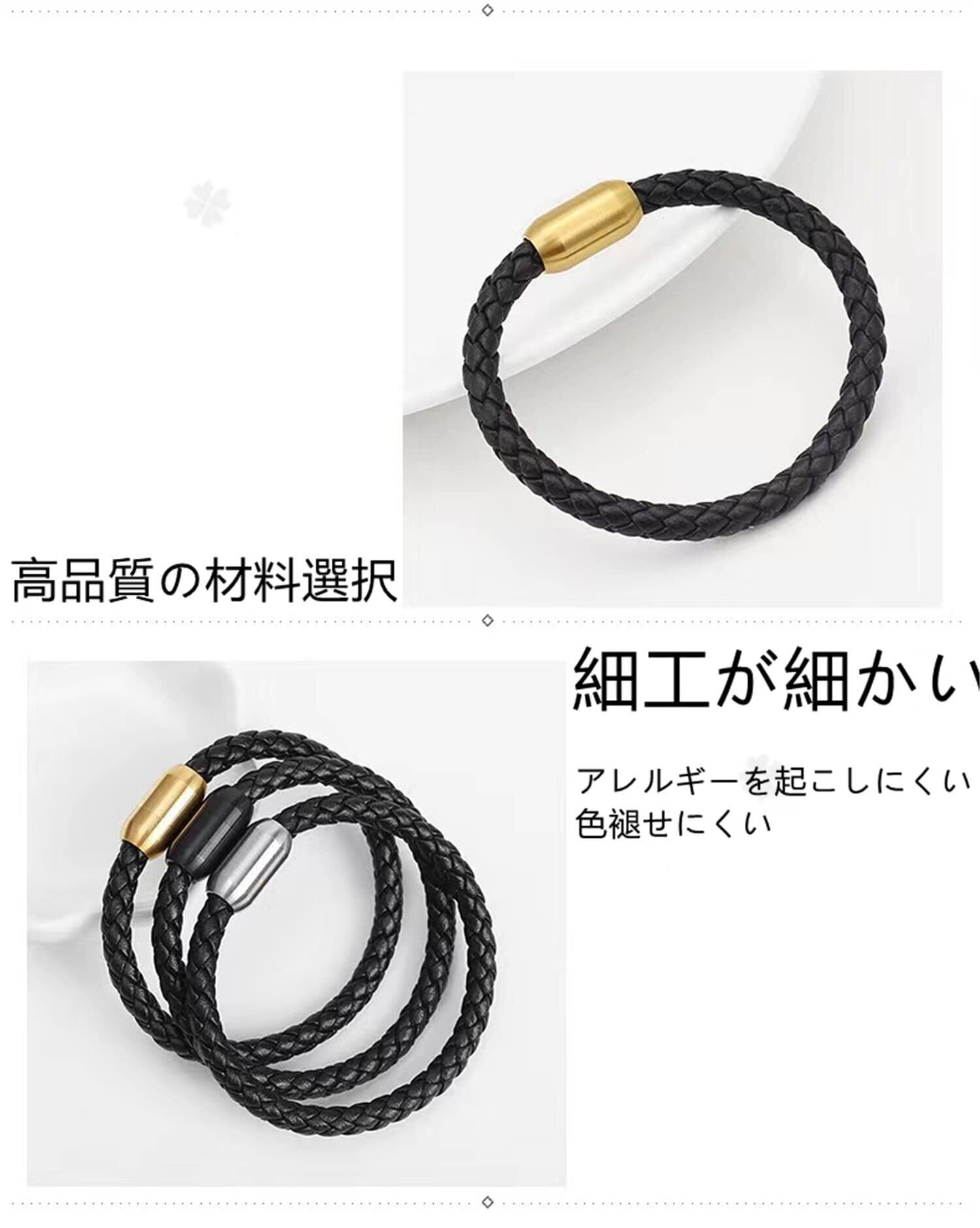 スタイル:黒のメンズブレスレットは完璧にマッチする理想的なアクセサリーです。 シンプルでエレガントな織り革のデザインは間違いなく人々を魅了します。
