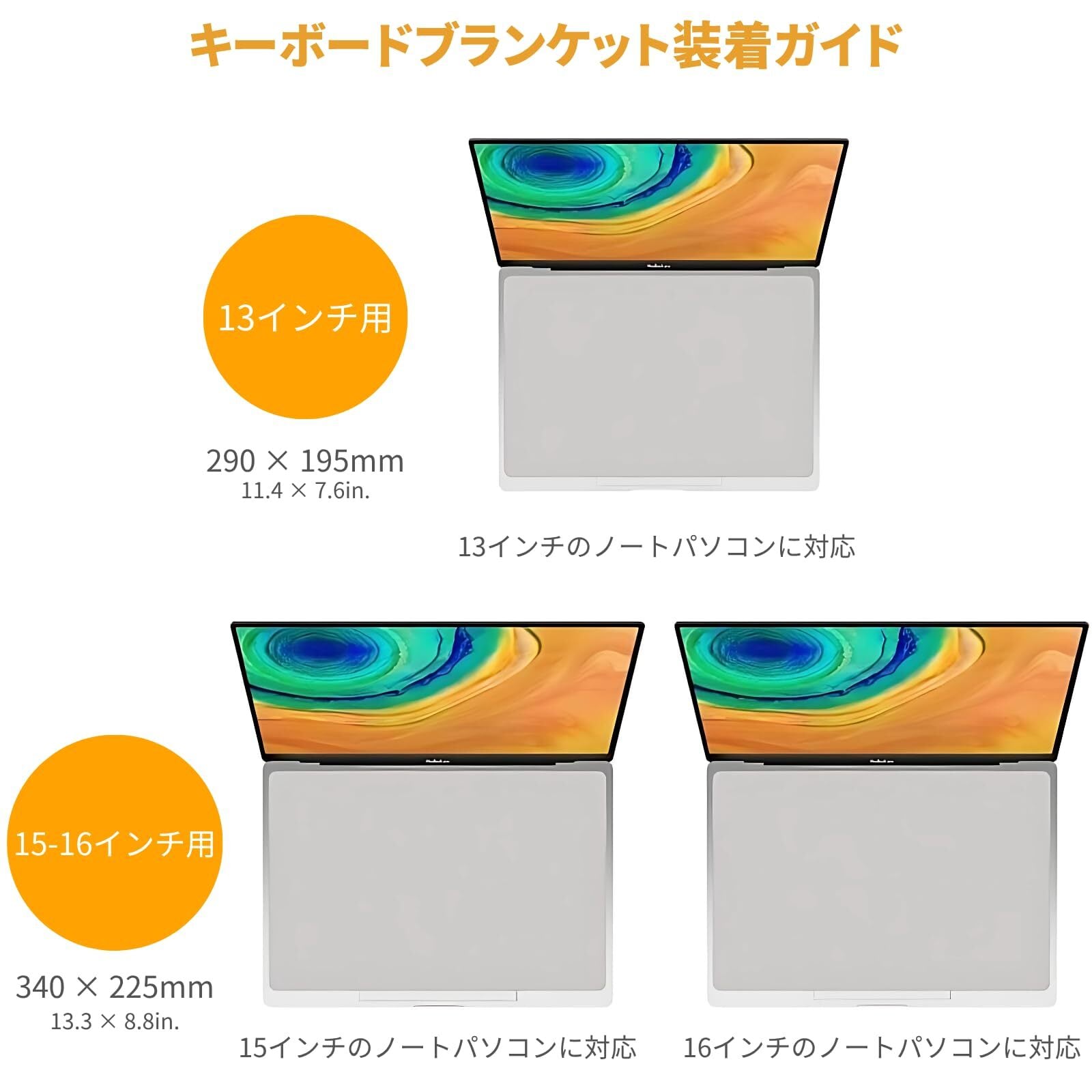 ノートパソコン キーボード カバー&クロス 2in1 13インチ用 マイクロファイバー 防塵 保護 フィルム クリーニング 13inch