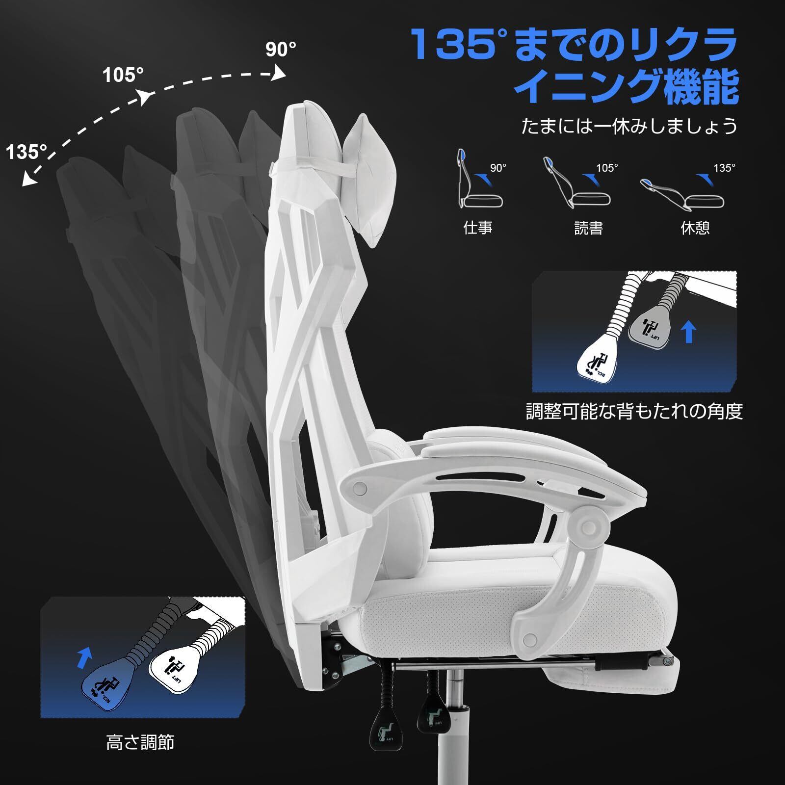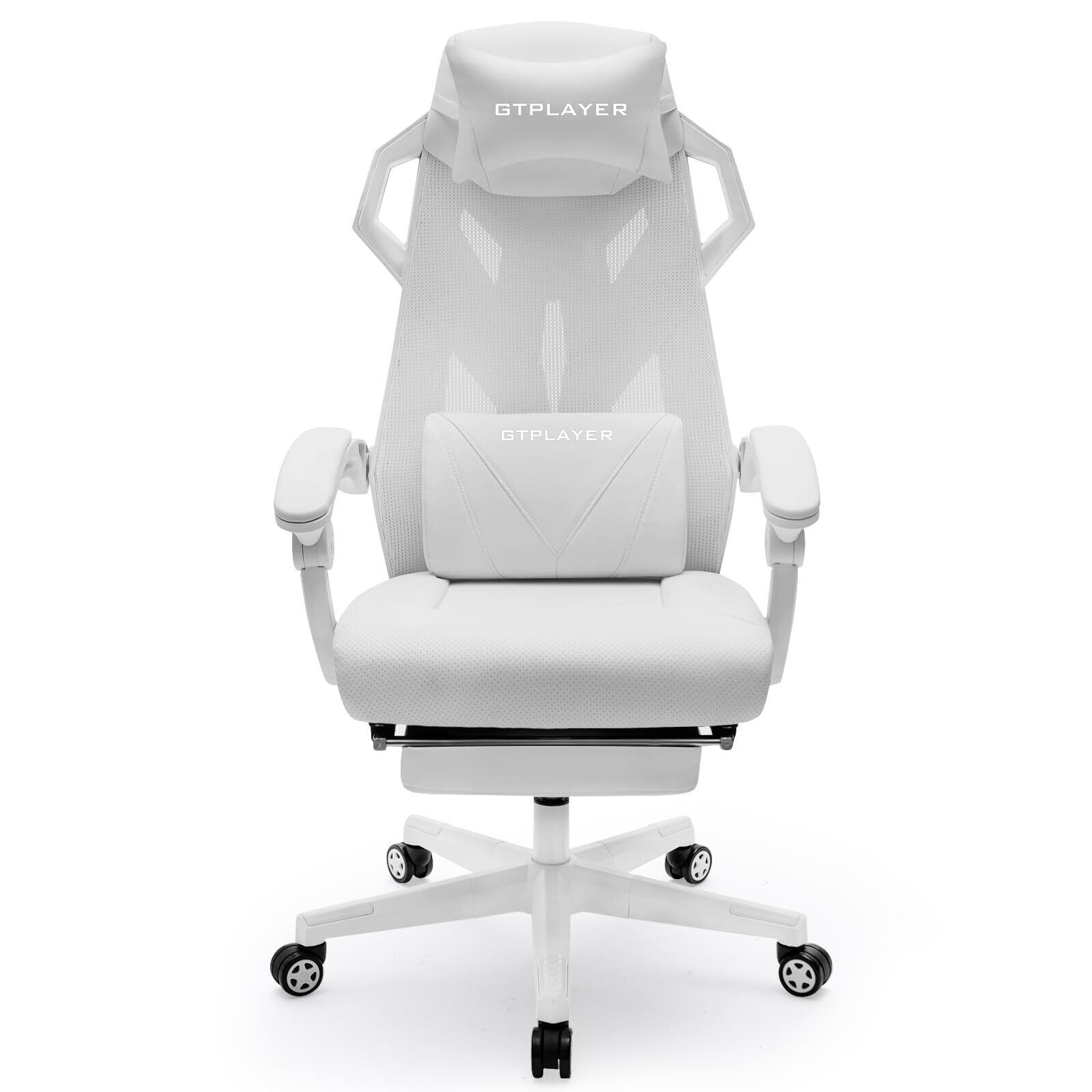 GTRacing ゲーミングチェア 真っ白 疲れない PC デスク パソコン 椅子 オットマン付き テレワーク リクライニング ハイバック オフィスイス『仕事用ゲーミングチェア』ゲーム用 フットレスト ハイバック/気孔付き皮革とメッシュ素材/連動型アームレスト (GTPLYERシリーズ Luft310- WHITE)