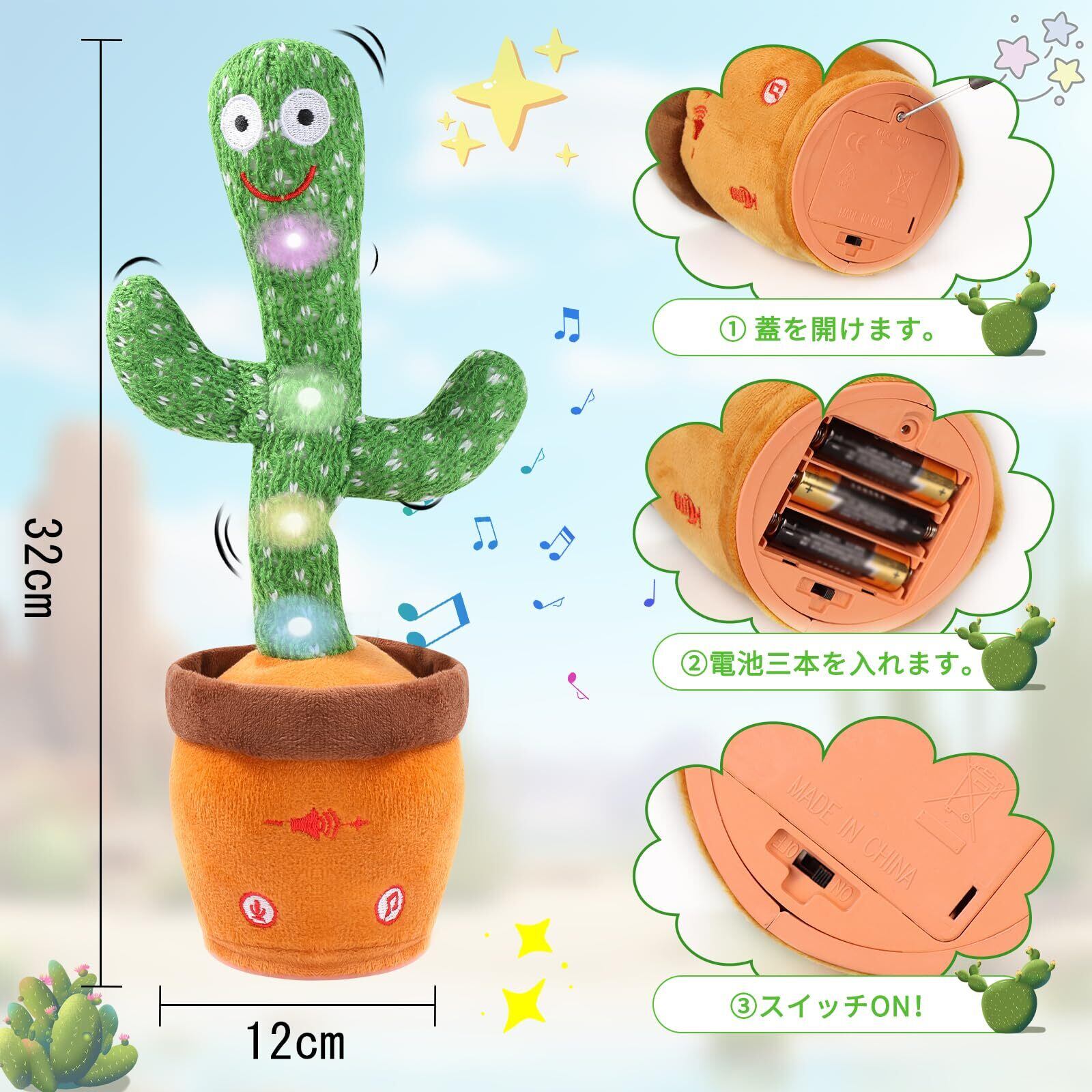 JISON21 サボテン おもちゃ 録音 踊るサボテン 音量調整可能 しゃべる ぬいぐるみ 動くサボテン 喋るサボテン 踊る/録音/歌う/LED発光 ダンシングサボテン dancing cactus toy 真似するぬいぐる 新設刺繍目 刺繍ボタン 箱詰め 子供の日 誕生日 ギフト プレゼント クリスマス飾り (ポップソングバージョン)