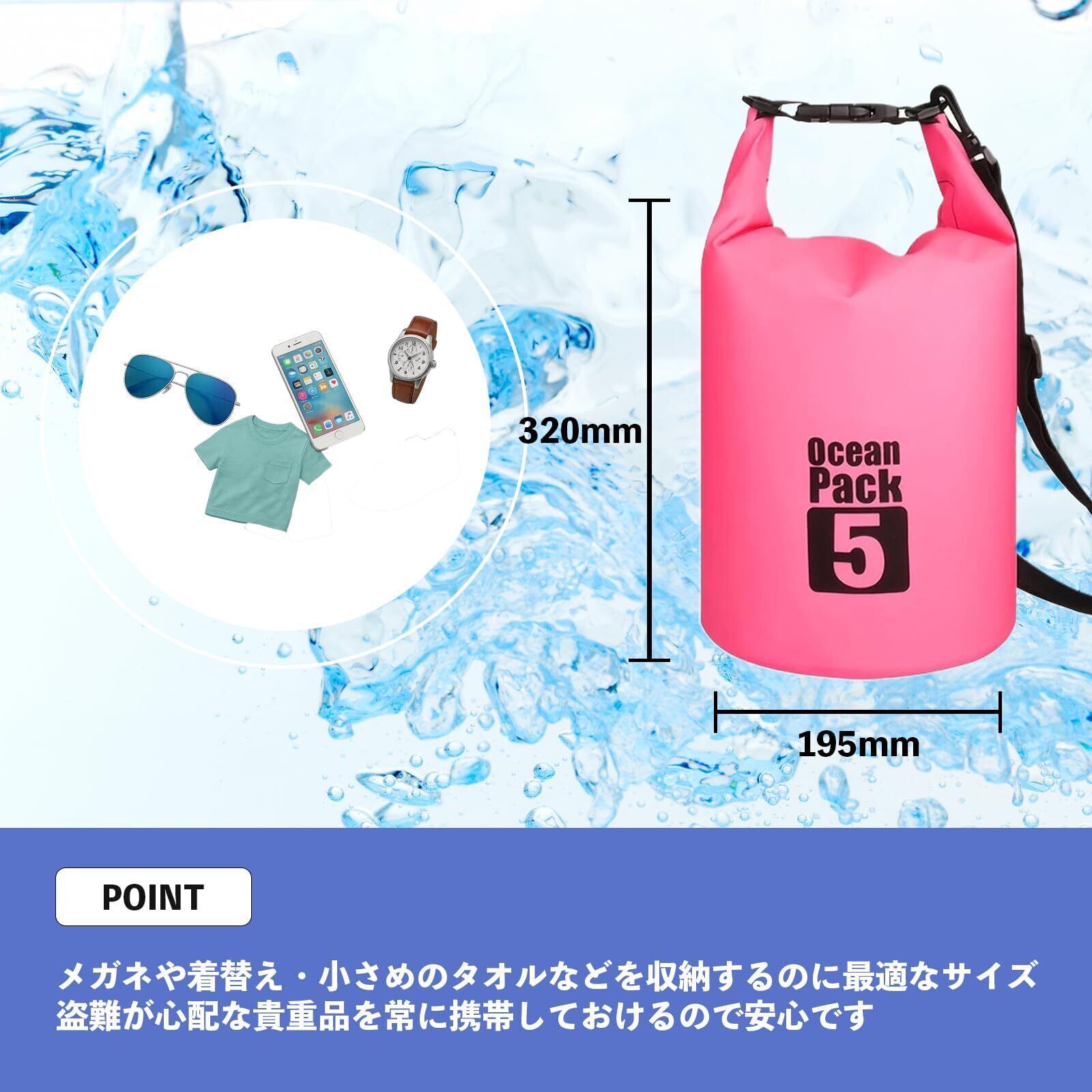 【究極の防水ドライバッグ】プロが認める耐久性と機能美を追求した、あなたのアウトドアライフを変える一品 アウトドアアクティビティを心から楽しむために、本当に信頼できる防水バッグをお探しではありませんか?私たちが開発した防水ドライバッグは、他社製品とは一線を画す品質と機能性で、あなたの大切な荷物を確実に守ります。 ■ 圧倒的な耐久性を実現する500DPVCダブルステッチ製法 最大の特徴は、他社製品では採用されていない「500DPVCとダブルステッチ」の組み合わせです。一般的なドライバッグは薄い素材にシングルステッチで縫製されているため、使用を重ねるうちに生地の引き裂けや縫い目のほつれが発生しがちです。 しかし、当社の防水ドライバッグは、厚みと強度に優れた500DPVCを採用し、さらにプロ仕様のダブルステッチ縫製を施すことで、圧倒的な耐久性を実現しました。特にストラップ付け根部分は補強加工により、重い荷物を入れても引き裂ける心配がありません。 この品質の高さは、プロのアウトドアガイドやマリンスポーツインストラクターからも高い評価を得ており、過酷な環境下での使用にも耐える信頼性を誇ります。 ■ 選べる6色×5サイズの豊富なバリエーション カラーバリエーションは、BLACK、BLUE、ORANGE、PINK、YELLOW、GREENの6色をご用意。シックなブラックから、視認性抜群のビビッドカラーまで、あなたのスタイルやシーンに合わせて自由にお選びいただけます。 特にORANGE、YELLOW、PINKなどの鮮やかなカラーは、アウトドアでの安全性も考慮し、遠くからでも一目で分かる高視認性を実現。緊急時の発見率向上にも貢献し、グループ活動での識別も容易です。 サイズ展開は、コンパクトな2Lから大容量の20Lまで、5つのサイズをラインナップ: - 2L:貴重品や小物の収納に最適 - 5L:日帰りレジャーやちょっとしたお出かけに - 10L:デイハイクや海水浴に - 15L:1泊2日のキャンプや登山に - 20L:長期アウトドアや本格的なアクティビティに ■ 用途に合わせた2WAY&リュック対応のマルチキャリー 持ち運びスタイルも、アクティビティに合わせて自由自在。2L~15Lのモデルには、長さ調節可能な肩掛けショルダーストラップが付属し、肩掛けにも手提げにも対応する2WAY仕様となっています。 20Lモデルには、ダブルショルダーストラップが付属しており、リュックとして背負うことが可能。両手を自由に使いたいハイキングやトレッキング、サイクリングなどのアクティビティに最適です。 ■ あらゆるアウトドアシーンで活躍する防水性能 当社の防水ドライバッグは、以下のような様々なシーンで大活躍します: - マリンスポーツ:カヌー、カヤック、SUP、ヨット、サーフィン - ウォーターアクティビティ:海水浴、プール、川遊び、釣り - 陸上アウトドア:キャンプ、登山、ハイキング、トレッキング - スポーツ:サイクリング、ランニング、スキー、スノーボード - 日常使い:雨の日の通勤・通学、ジム通い 口部を丸めてバックルで固定するだけの簡単操作で、外部からの水の侵入を確実に防ぎます。ただし、完全な水中での使用(潜水など)は避けてください。 ■ メンテナンスフリーで長持ちする特殊素材 特殊なPVC素材の採用により、汚れや塩分が付着しても水洗いで簡単にお手入れ可能。海水や泥汚れもサッと拭くだけでOK。特別なメンテナンスは不要で、購入時の品質を長期間キープできます。 暑い夏でも寒い冬でも、素材の柔軟性が失われることなく安心してお使いいただけます。また、使用しない時はコンパクトに折りたたんで収納できるため、場所を取りません。 ■ 業界最高水準の1年間無料交換 品質への絶対的な自信の証として、購入から1年以内の破損については無料交換をしています。これは他社にはない充実のアフターサービスで、お客様に安心してアウトドアをお楽しみいただくための取り組みです。 万が一の際も、迅速かつ丁寧に対応させていただきますので、長期間にわたって安心してご使用いただけます。 ■ プロフェッショナルが認める品質 500DPVCとダブルステッチの組み合わせによる堅牢性は、プロのアウトドアガイドやマリンスポーツインストラクターからも高い評価を得ています。過酷な環境下での使用にも耐える信頼性は、あなたの大切な荷物を確実に守ります。 ■ 使い方は簡単4ステップ 1. 開口部を揃える 2. 開口部を折りたたむ(3~4回) 3. バックルでロック 4. 完了! この簡単な操作で、確実な防水性能を発揮します。 --- アウトドアライフをより豊かに、より安心に。当社の防水ドライバッグは、あなたの冒険を全力でサポートします。他社製品との違いを、ぜひ実感してください。品質、機能性、デザイン、アフターサービス。すべてにおいて妥協のない、究極の防水ドライバッグをお届けします。 あなたの次のアドベンチャーのパートナーとして、この防水ドライバッグをお選びください。きっと期待以上の満足をお約束いたします。