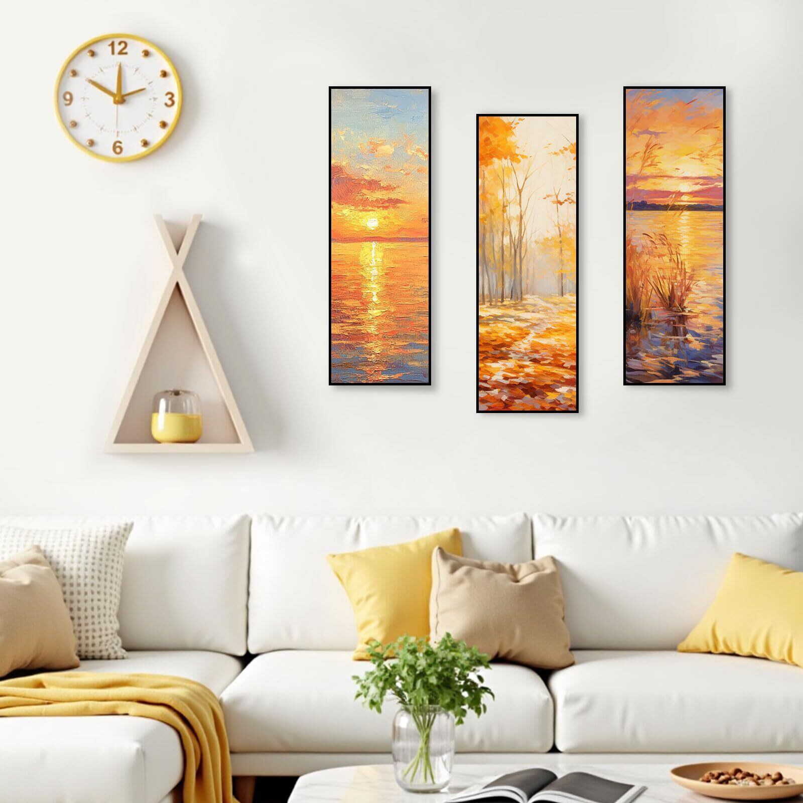【特殊な長方形形状】横幅 10cm× 高さ 30cm のユニークなサイズ。複数枚を組み合わせてモダンなアートギャラリー風の装飾が可能です。1.5cm の厚手フレームで立体感を演出し、額装不要でそのまま壁に飾れます。