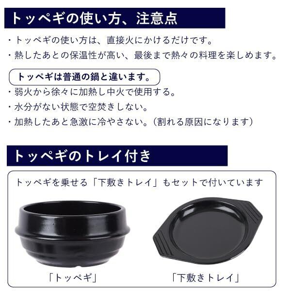 韓国定番の伝統食器、韓国土鍋「トッペギ」、下敷きトレイと韓国老舗ブランドの韓国スプーン付きのセット品です | ご家庭で本格韓国料理を味わえる保温効果が高い本格仕様の万能土鍋【保温性が高い!】【火に強い!】【衝撃に強い!】 | 美味しい料理を最後まで温かく楽しめます、韓国鍋の代表的な各種チゲやピビンバ、クッパなどの韓国料理に限らず様々な料理に活用できます