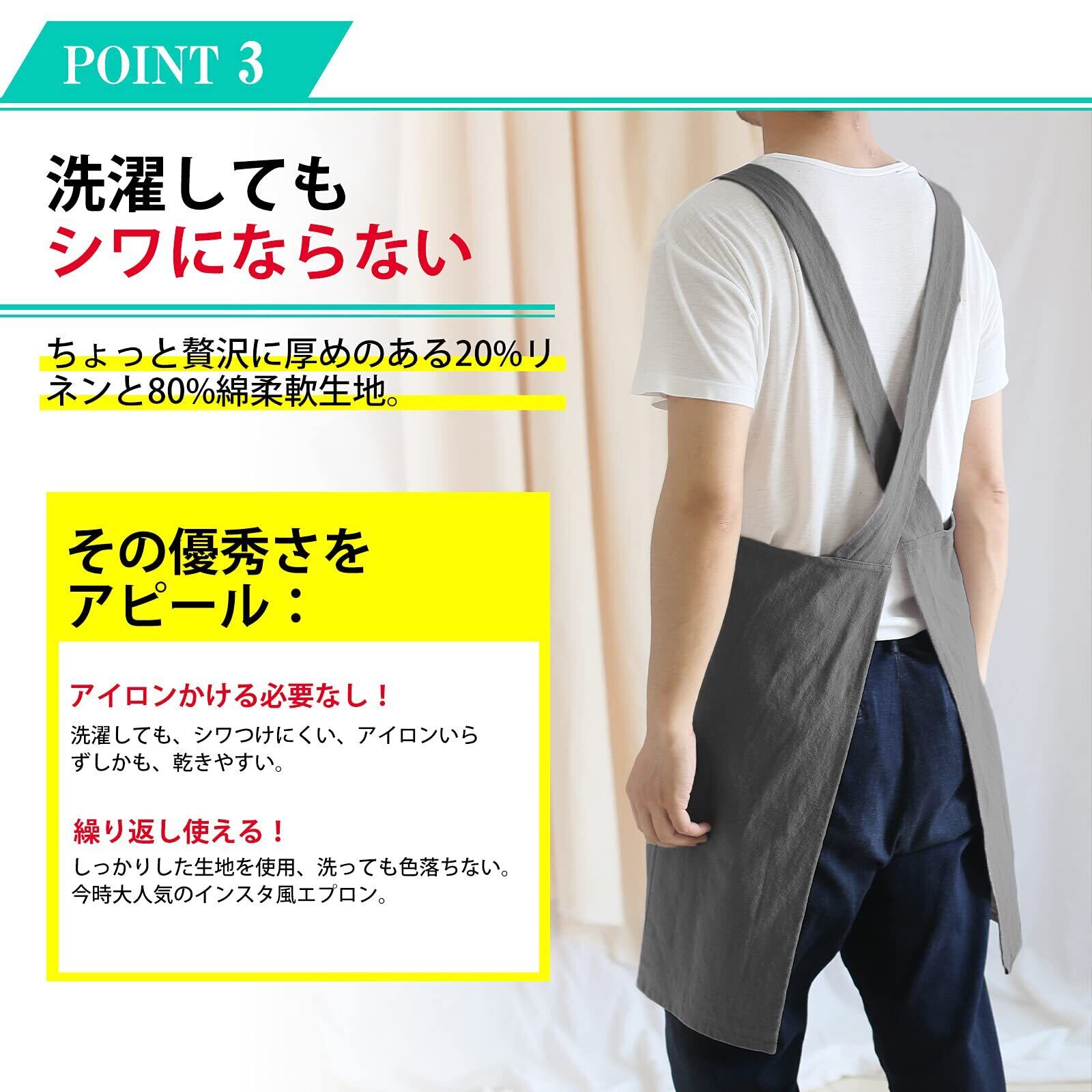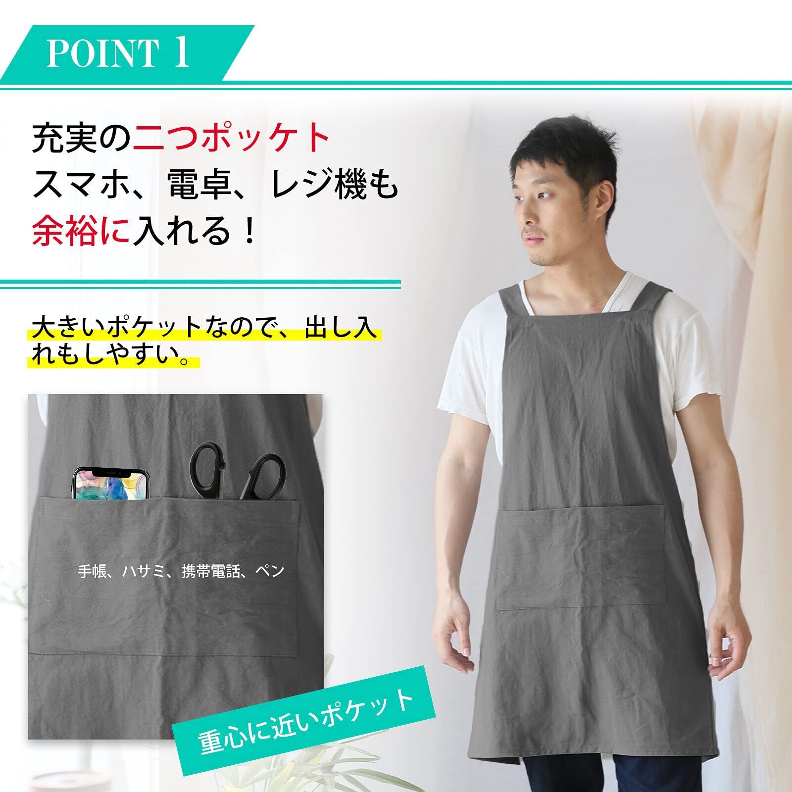 4.コットン生地:エプロンは高品質のコットン生地で作られており、通気性に優れ、ご自宅での作業中も爽やかで快適です