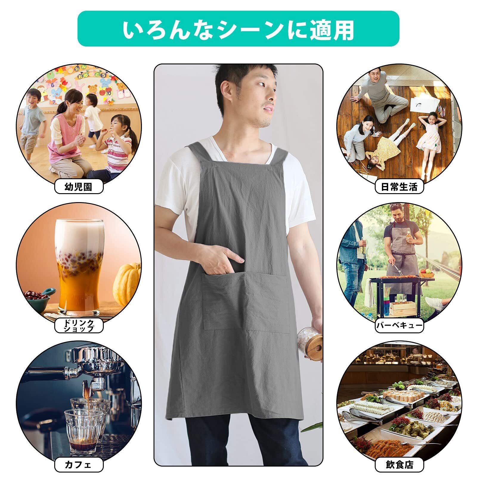 [Ninonly] エプロン 家庭用 おしゃれ シンプル H型 肩掛け コットン 無地 着脱カンタン ポケット付き 男女兼用 グレー カーキ