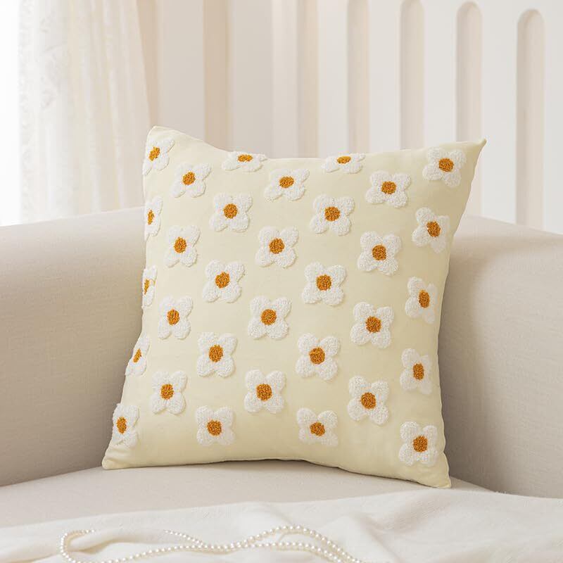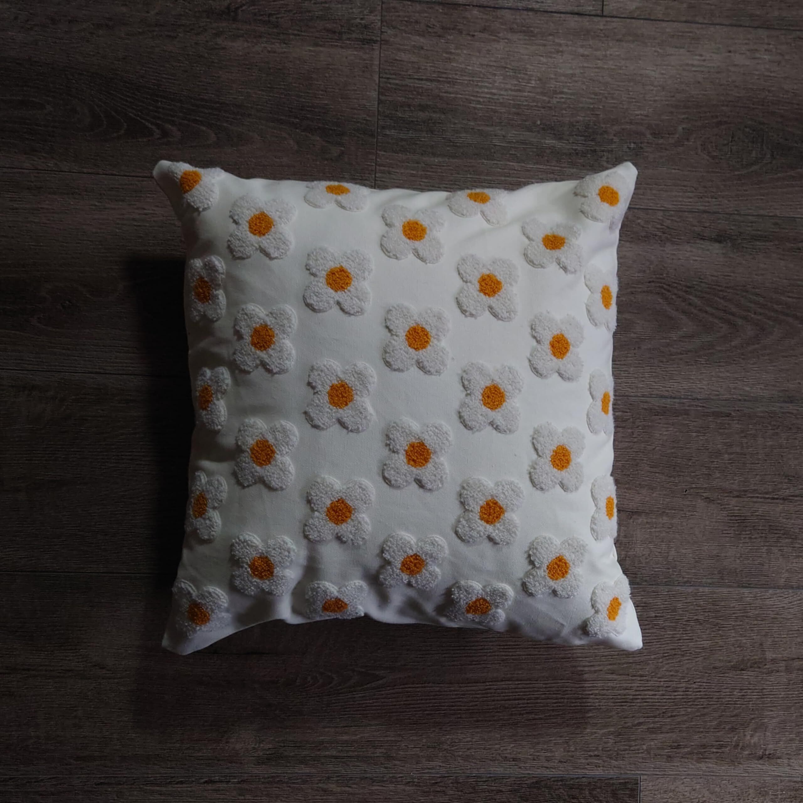 miagolale パイルフラワー クッションカバー 45×45cm 花柄 白い花 (ホワイト)