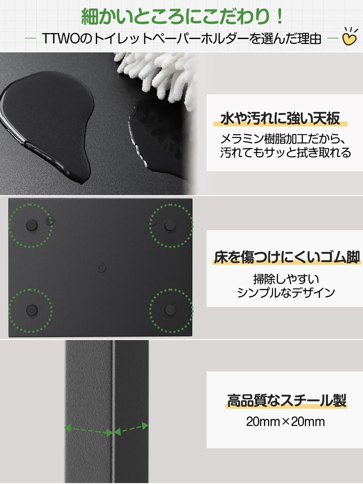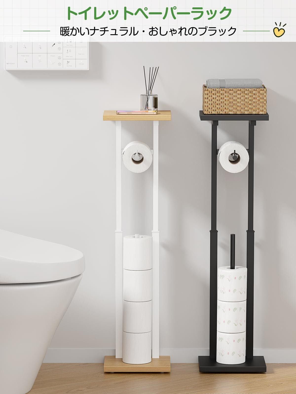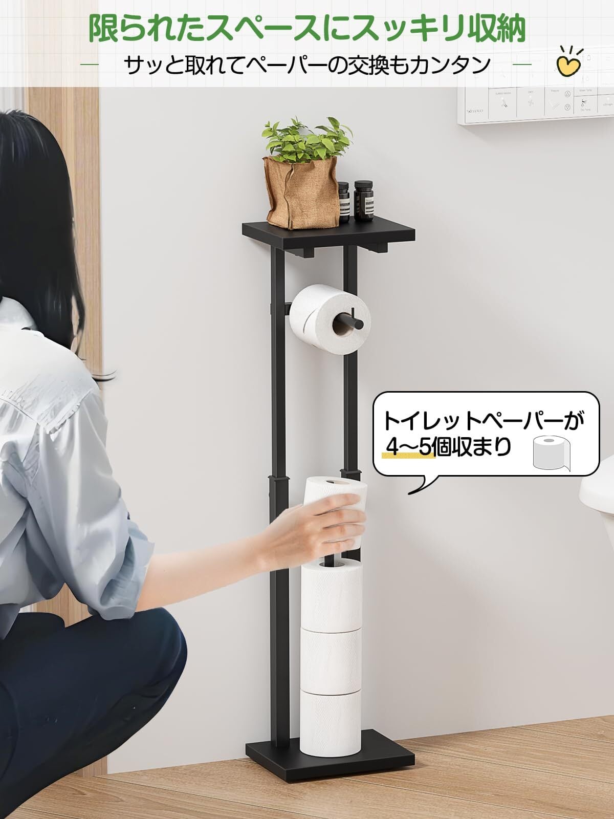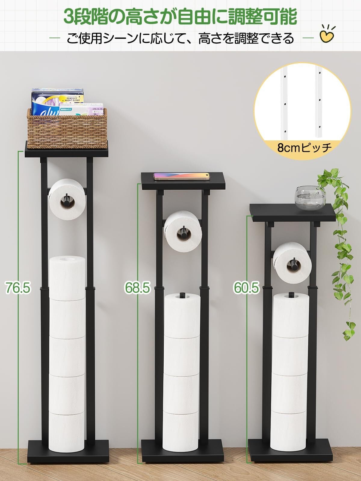 TTWO トイレ収納棚 トイレットペーパーホルダー 幅20×奥行15×高さ60.5-76.5cm 高さ3段階調節 スリム ペーパースタンド スマホ・芳香剤置き トイレラック コーナー 隙間 ストッカー 洗面所 玄関収納 便利 省スペース 薄型 サニタリーラック おしゃれ (ブラック)