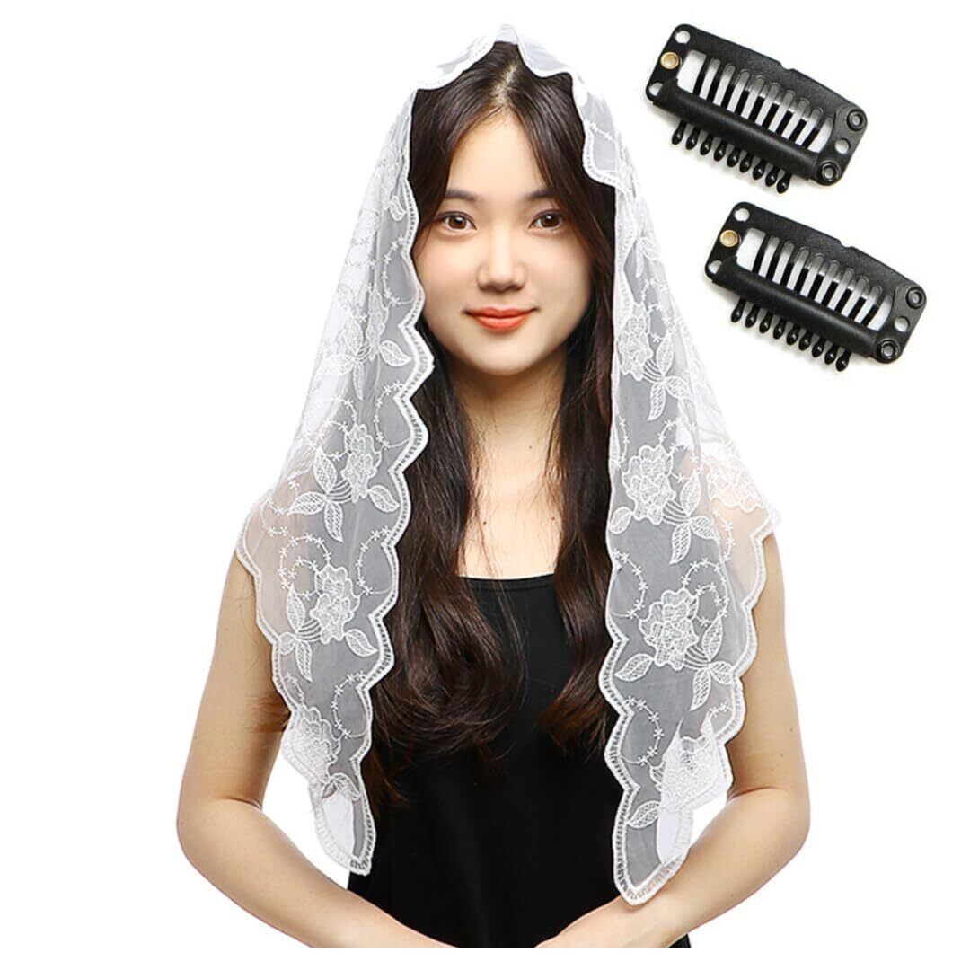 [Uccellino] カトリックベール 教会 ミサ 三角形 取り付け用コーム付き ヴェール 礼拝 ずり落ちない レース