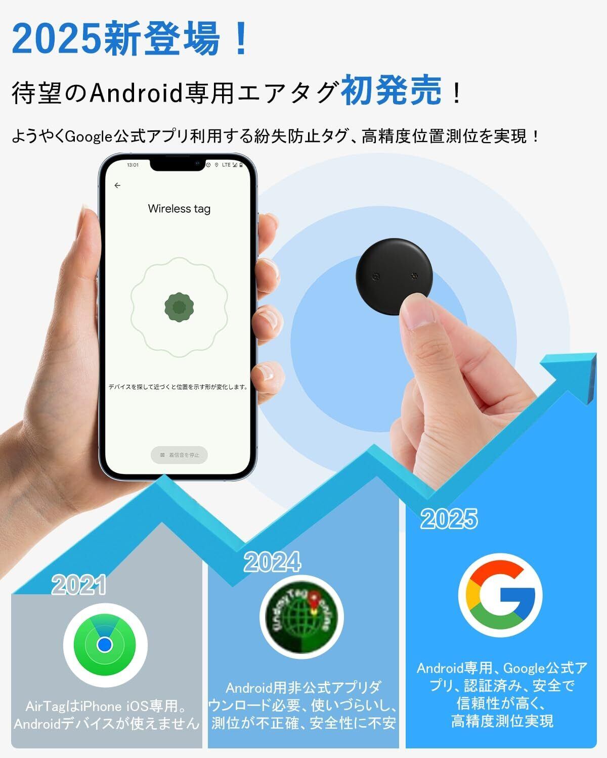 【2025最新Google公式認証】エアタグ Android airtag スマートタグ 紛失防止タグ アンドロイド gpsタグ スマートトラッカー 財布 超薄 超軽量 小型GPS発信機 追跡タグ (Google「検索ハブ」対応 )Android専用 全球GPS測位 超強信号 超長持ち 月額なし 子供/高齢者/ペット見守り 鍵/車両追跡 キーホルダー付きソフトシリコンカバー 日本語説明書