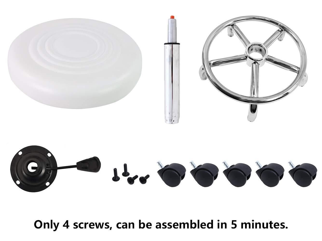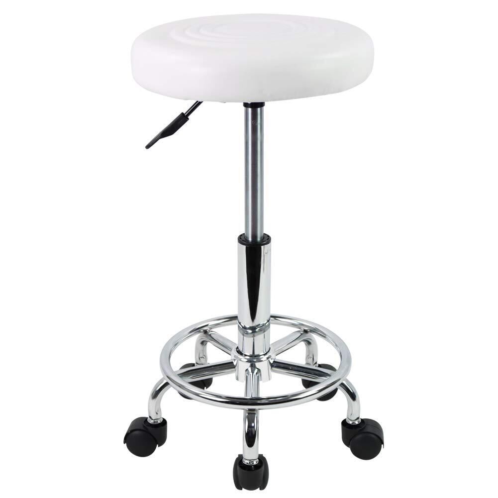 KKTONER PUレザー 丸椅子 キャスター昇降スツール フットレスト付き 回転椅子 高さ調節可能 バーカウンター製図サロンスツール オフィスチェア ホワイト S サイズ (白)