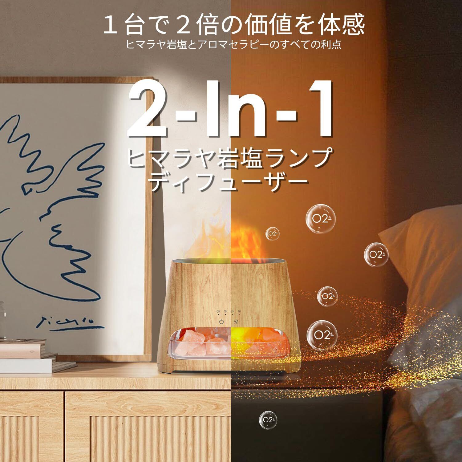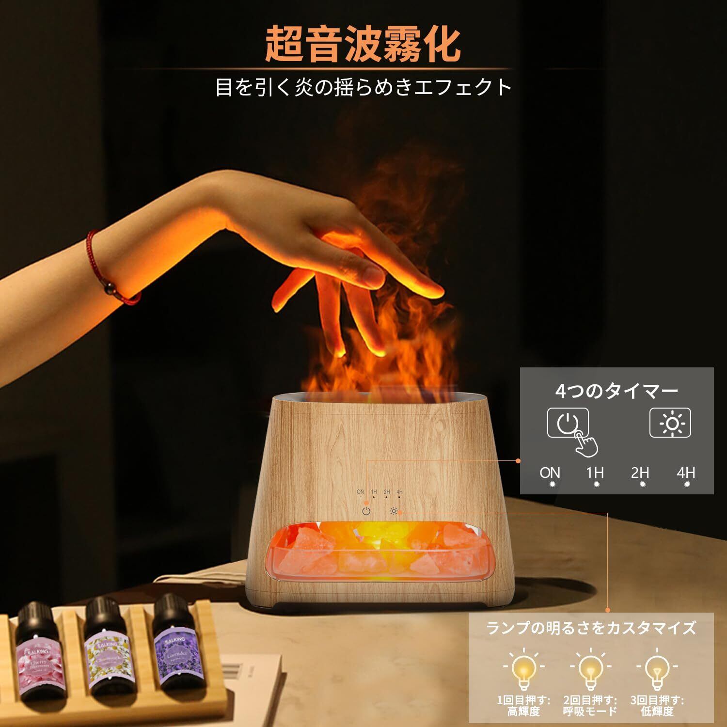 SALKING 2-in-1 アロマディフューザー 超音波式 アロマストーン 焚き火 癒し ライトナイト付 4時間タイマー 3階段輝度調整 自動オフ 空焚き防止 静音 空気清浄 乾燥対策 お手入れ簡単 誕生日 お祝い バレンタイン プレゼント 贈り物