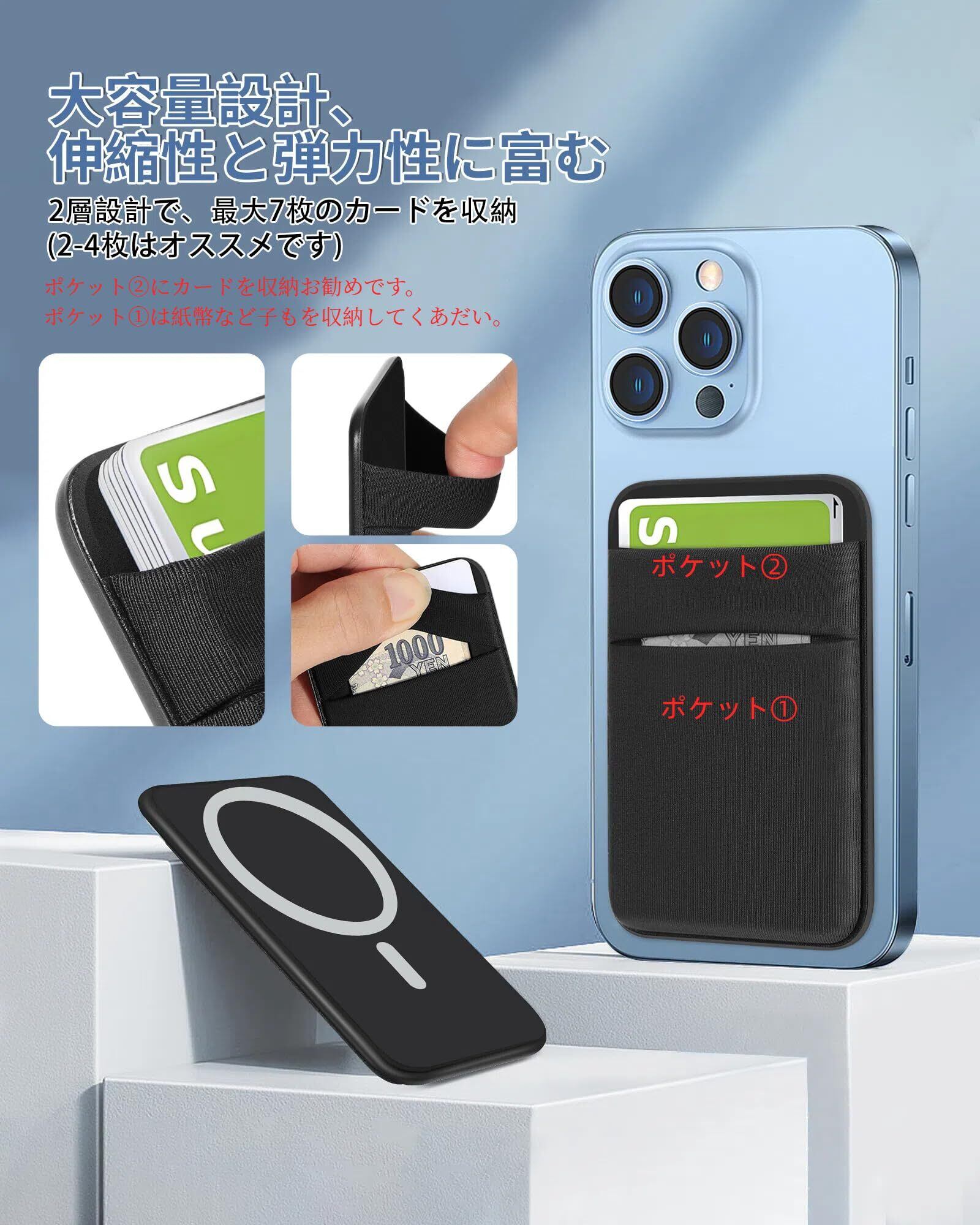Senose magsafe カードケース スマホ magsafeウォレット カード入れ SUICA 定期入れ 最大7枚収納可能 カードホルダー 持ち歩き便利 iPhone 14/iPhone 13/iPhone 12シリーズ兼用 (ブラック)