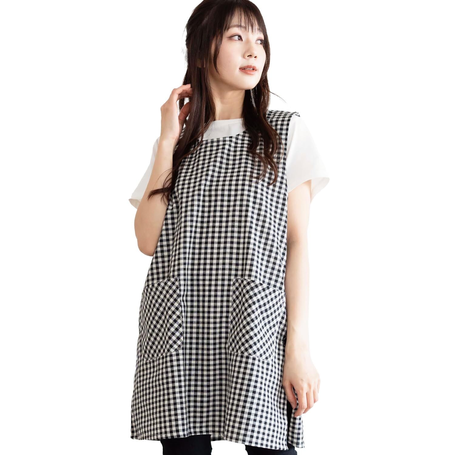 【お仕事用におすすめ】サイドにボタンがあるかぶりタイプのエプロンです。普段の家事や炊事などお家使いはもちろんのこと、介護士さんや保育士さんなどお仕事用にもおすすめのエプロンです。