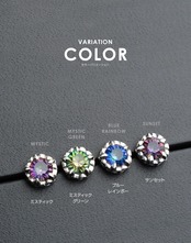 中央にセットされているのは角度によって様々な輝きを見せて輝くミスティッククォーツ