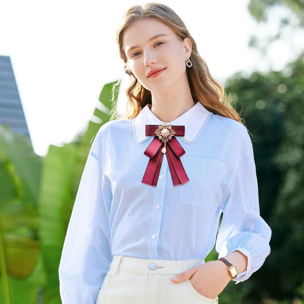魅力的な制服リボン:この繊細で可愛らしい制服リボンは、優雅で魅力的な雰囲気を漂わせます。巧妙なデザインにより、白いシャツの襟やVネックのニットに簡単に合わせ、完璧な調和感を演出します。