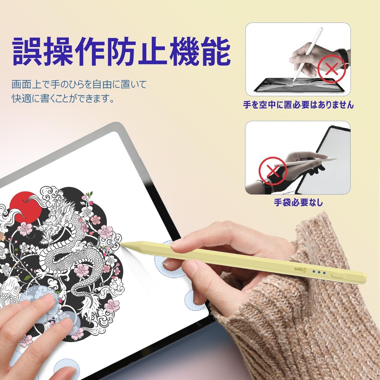 【磁気&誤タッチ対策】内蔵の強力マグネットにより、iPadにしっかり吸着するタッチペンです。持ち運びや収納が簡単で、誤タッチ防止機能により、自然な描き心地を実現。さらに、ipad ペンとしての安定感と、ipad タッチペンならではの精度を、タッチペン ipadの使い心地でお届けします。