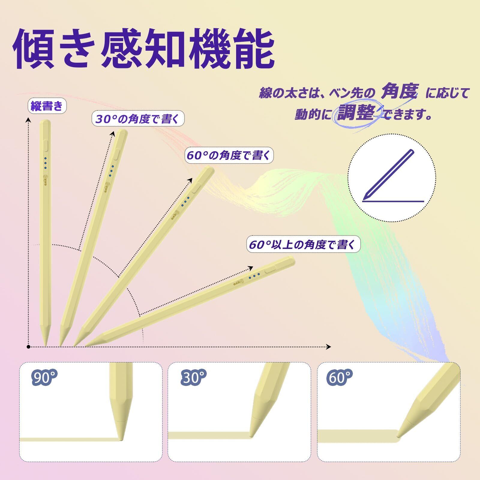 VIVID TECH アップルペンシル級急速充電 タッチペン ipad 高感度&低遅延 Apple Pencil互換 滑らかさ/磁気吸着/傾き感知/電量表示/誤作動防止機能対応 ipad ペンシル 軽量 耐摩 耐久 スタイラスペン【2018年~2025年 iPad対応】 (イエロー)