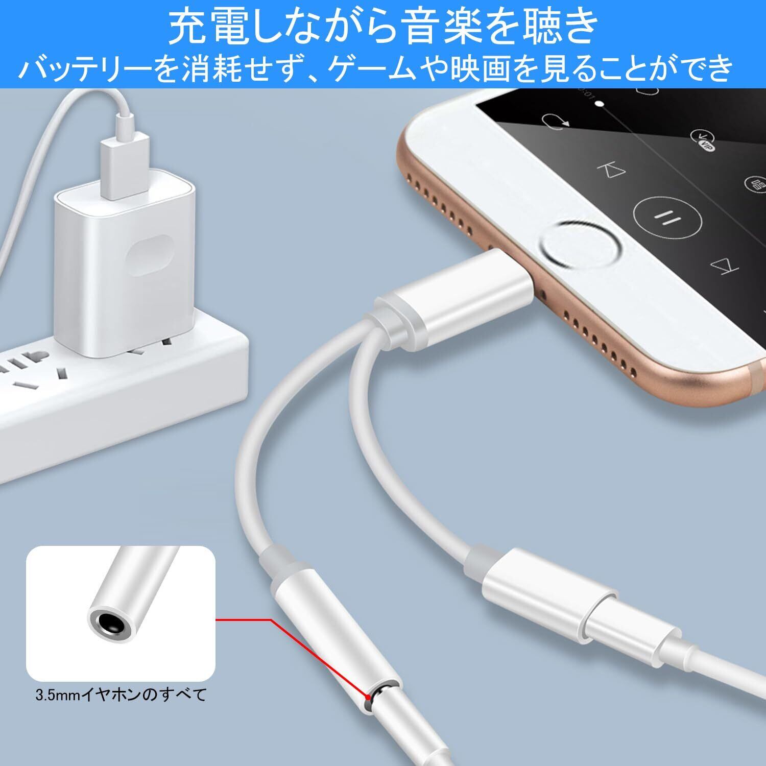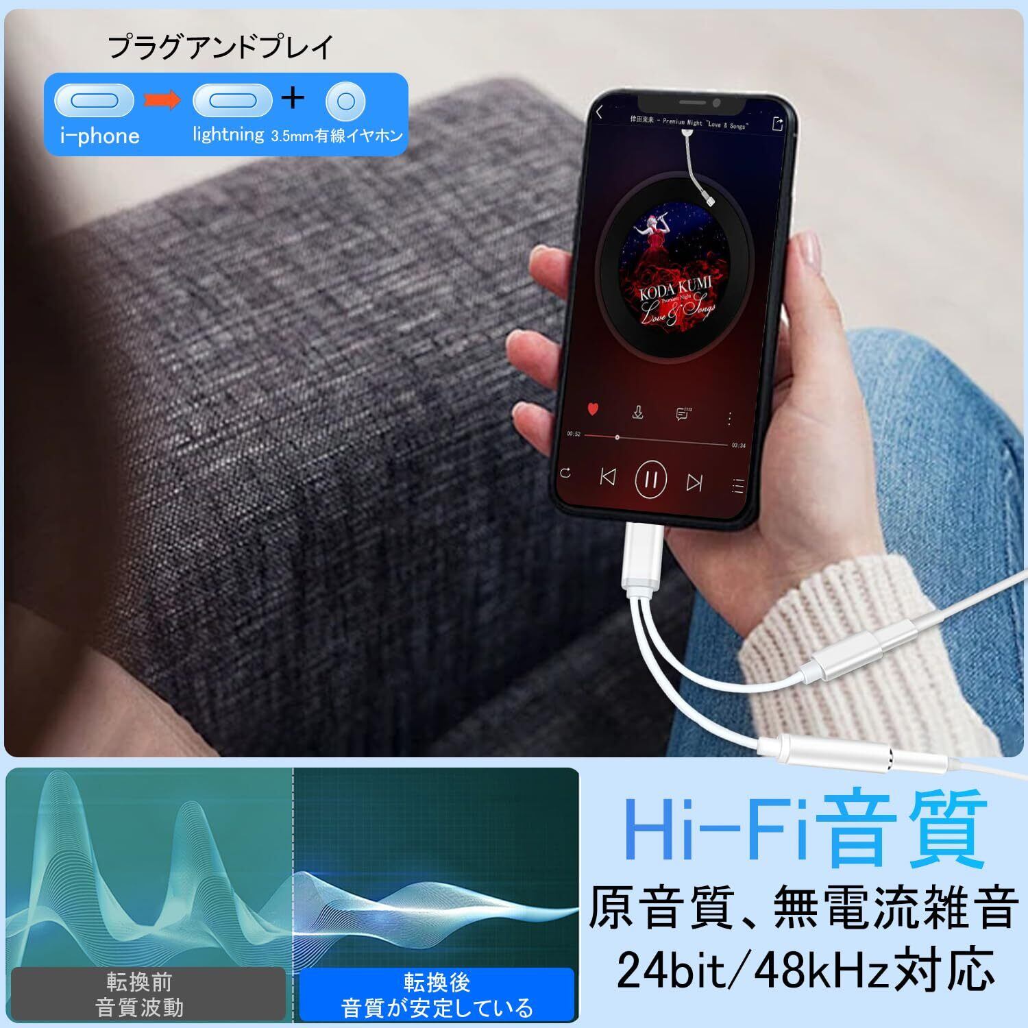 Lightning-3.5MM変換アダプター 【2025新登場】i-Phone 2in1イヤホン変換アダプタ 充電しながらイヤホン 急速充電同時音楽 搭載24bit/48KHz Hi-Fi音質 i-Phone14/13/12/11/8/8plus/7/7plusXS/SE/MAX/XS/X適用