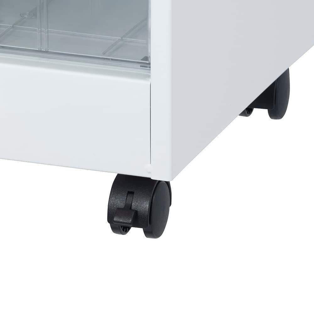 材質:本体/スチール 粉体焼付塗装、引出し/透明スチロール樹脂、引出し段板/ポリプロピレン、キャスター/ナイロン