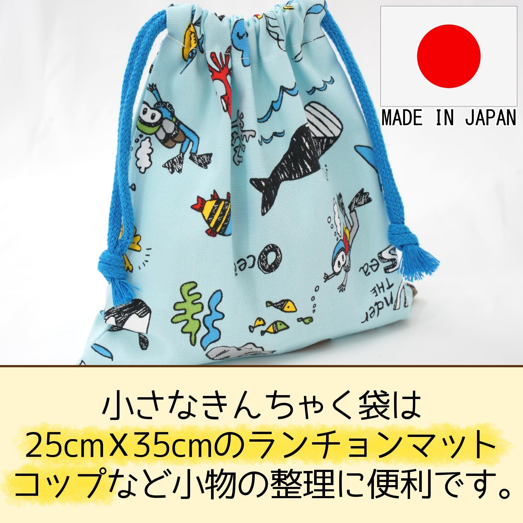 小さめ 巾着袋 巾着 小 コップ袋 歯ブラシ 日本製 保育園 小学生 子供 キッズ 男の子 きんちゃく S 海のなかま