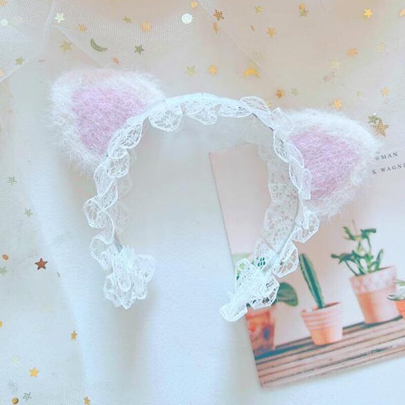 アニマル耳付きのレースカチューシャ全長15~20cm程度のぬいぐるみにお使いいただけます。サイズ:カチューシャ横幅:約8cm カチューシャ長さ:約22cm