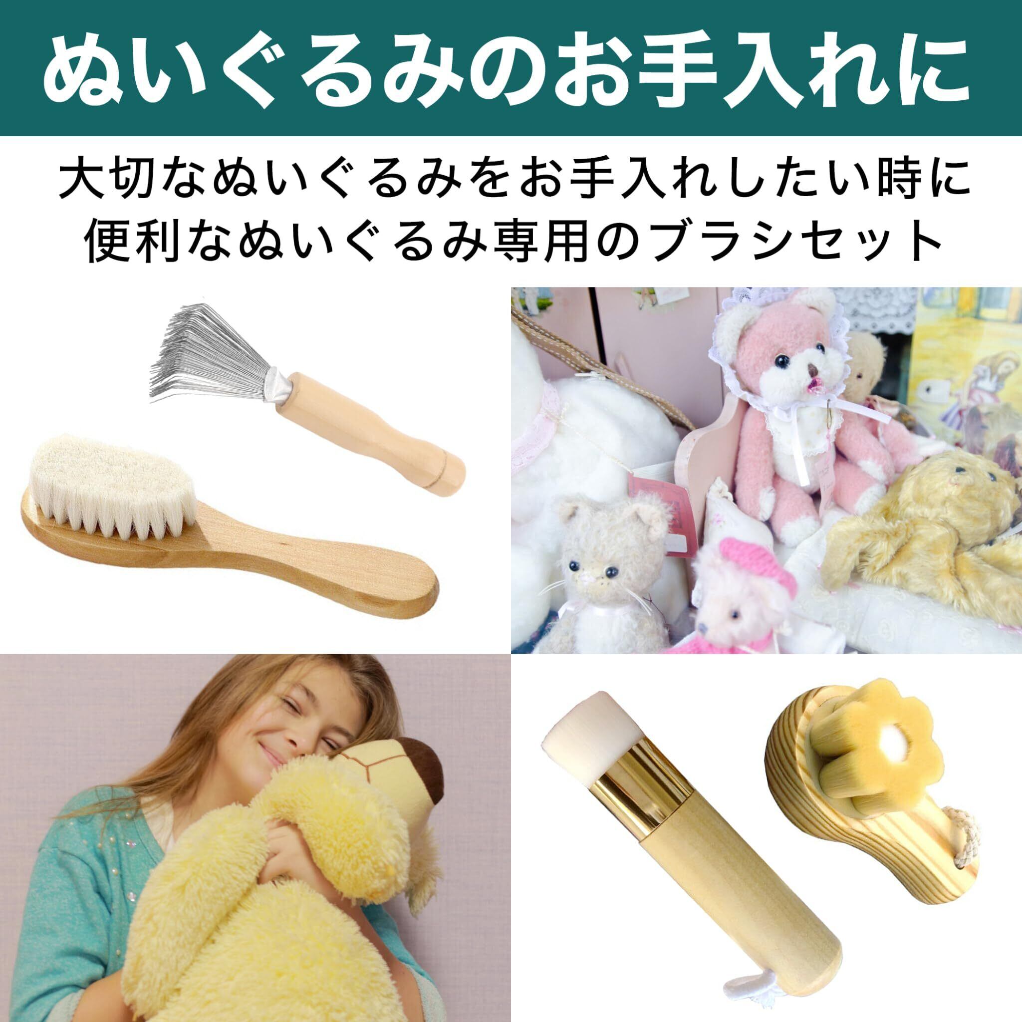 ぬいぐるみをお手入れしたい時にピッタリ:大切なぬいぐるみの毛並みを綺麗にお手入れしたい時にピッタリのぬいぐるみ専用のブラシセットです。羊毛ブラシと起毛ブラシを合わせて使えば、手触りのよい綺麗な毛並みに仕上げることができます。